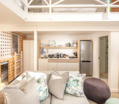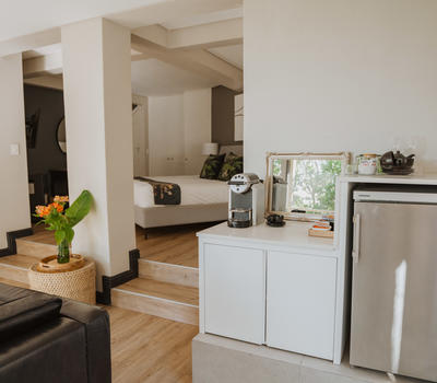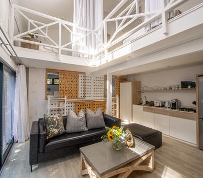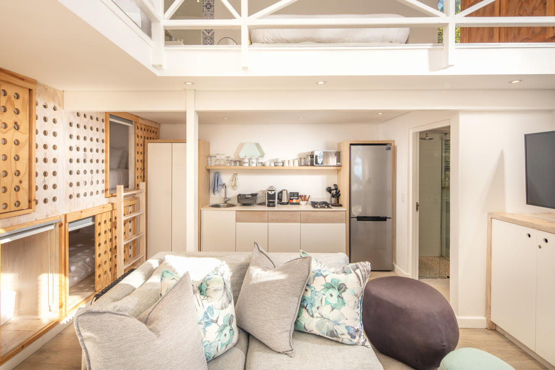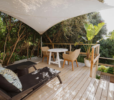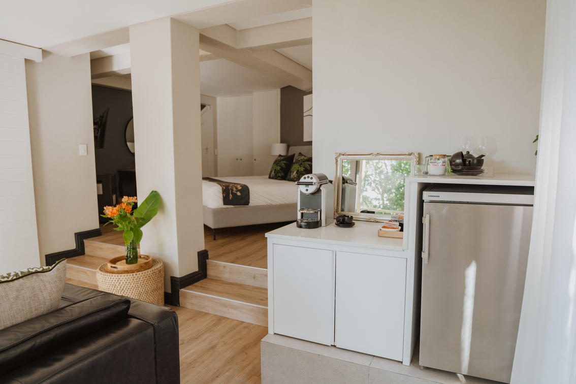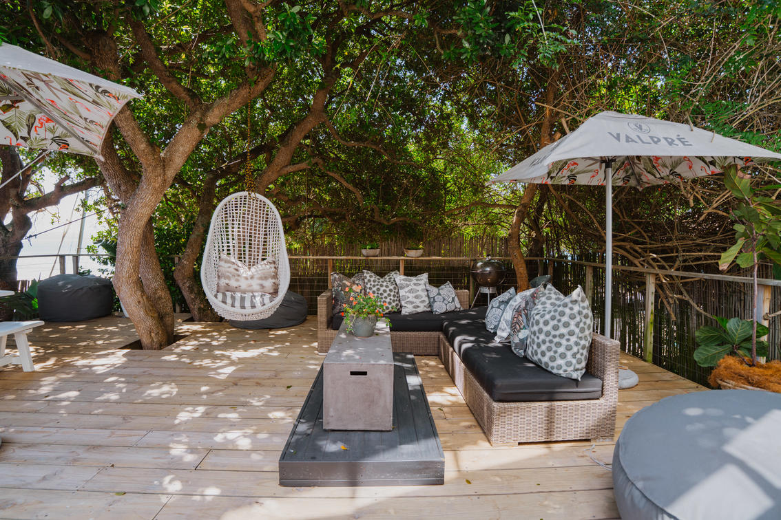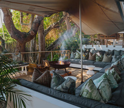 Deluxe lead onto an inviting outdoor lounge with a canopy of ancient milkwood trees. A firepit gives a warm ambience on balmy summer evenings.