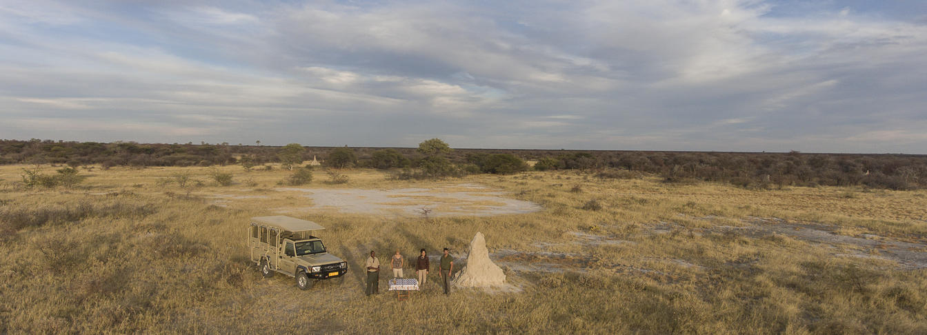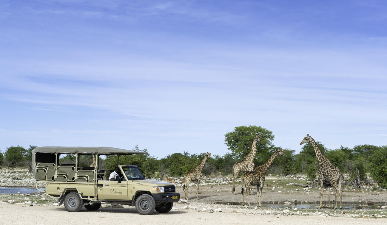 La Sundowner Drive se lleva a cabo en la Reserva Natural Privada de Onguma, que consta de 34 000 hectáreas de naturaleza salvaje de Namibia, y es el hogar de numerosos animales de caza de las llanuras, más de 300 especies de aves y cuatro de las cinco grandes.
