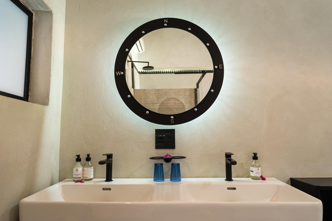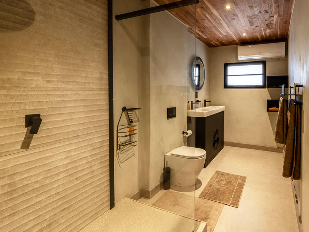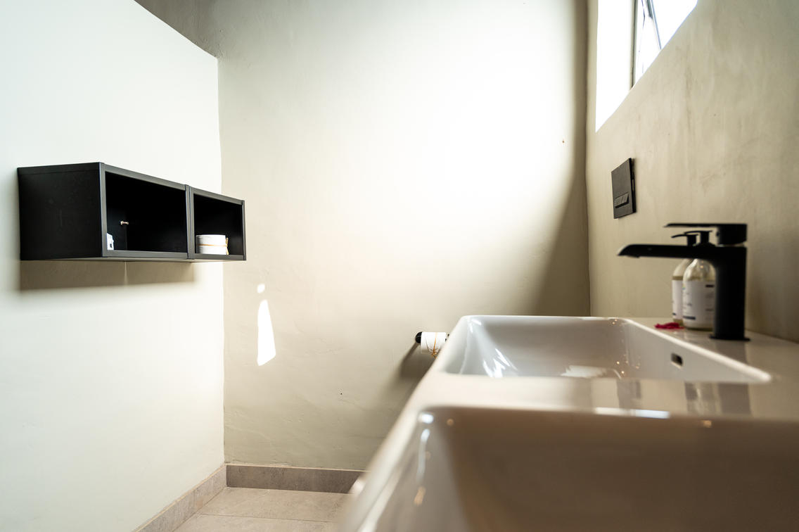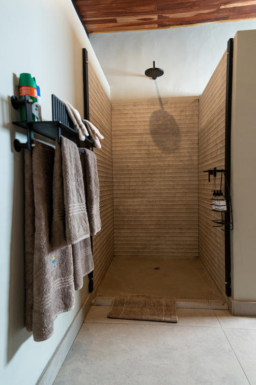 Habitación doble de lujo con baño privado y gran porche en el patio compartido. Las camas se pueden convertir en dos camas individuales o en una cama king size. Aire acondicionado, mosquitera, cafetera y todos los artículos de tocador necesarios, incluido un secador de pelo.