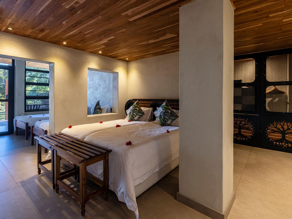 Habitación familiar, con capacidad para 2 adultos y 2 niños menores de 13 años, con baño privado y terraza con vistas al río Chobe. Las camas se pueden convertir en dos camas individuales o en una cama king size. Aire acondicionado, cafetera y todos los artículos de tocador necesarios, incluido un secador de pelo.