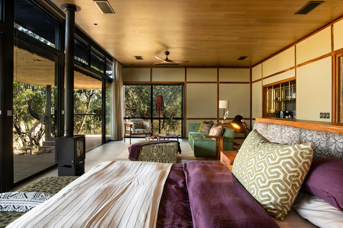 7 suites Safari, cada una ubicada con vista al impresionante lecho del río Nhlaralumi con vistas panorámicas de la selva. Toda la parte delantera de la suite es una combinación de puertas corredizas de vidrio y paredes corredizas de lona, que permiten que entre la luz. Terrazas cubiertas al aire libre y piscinas de inmersión privadas, ideales para comer y relajarse, con bancos hundidos, lo que lo acercará a la naturaleza.