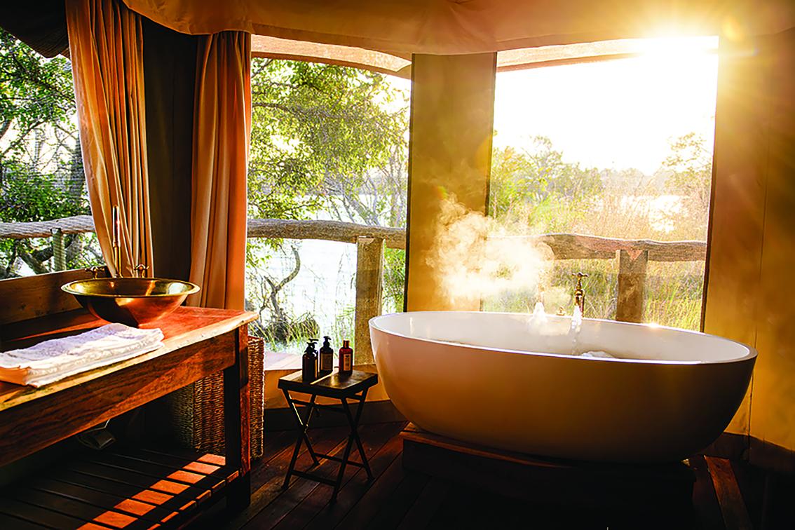 2 carpas de lujo son para familias que duermen 4, con ducha cubierta y baño en el borde del río Kafue con vistas al Parque Nacional.