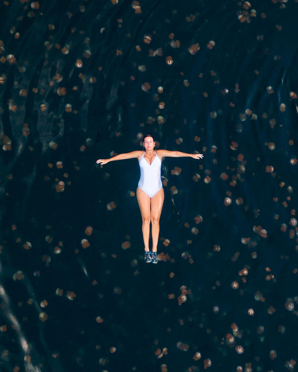 El lago Lenmakana, una laguna turquesa aislada en el centro de la isla, es uno de los lagos de medusas a los que se puede llegar en una corta caminata por un empinado acantilado de piedra caliza. A pesar del arduo viaje, la vista del lago y sus tesoros dentro merecen la pena. La luna, la medusa dorada y la Casiopea (la medusa invertida) son las tres especies diferentes que se mecen alrededor del lago, atrapadas por las mareas de hace mucho tiempo. El agua del lago consiste en agua de mar, diluida con lluvia y agua subterránea, lo que lo convierte en el hogar de algas verdes marinas que reaccionan fotosintéticamente con la luz solar para producir alimentos. Aislado de los depredadores naturales, la especie ya no requiere veneno como defensa propia. Como tal, nadar está en orden, y qué experiencia de aventura es.