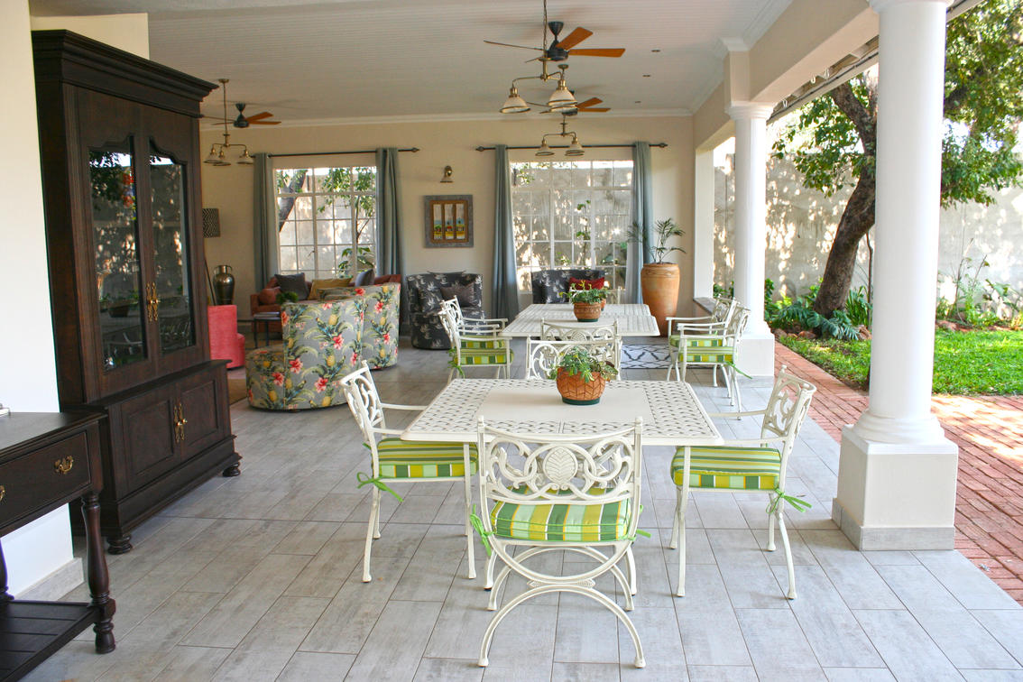 Todas las comidas se sirven en la terraza del restaurante con vistas al jardín.