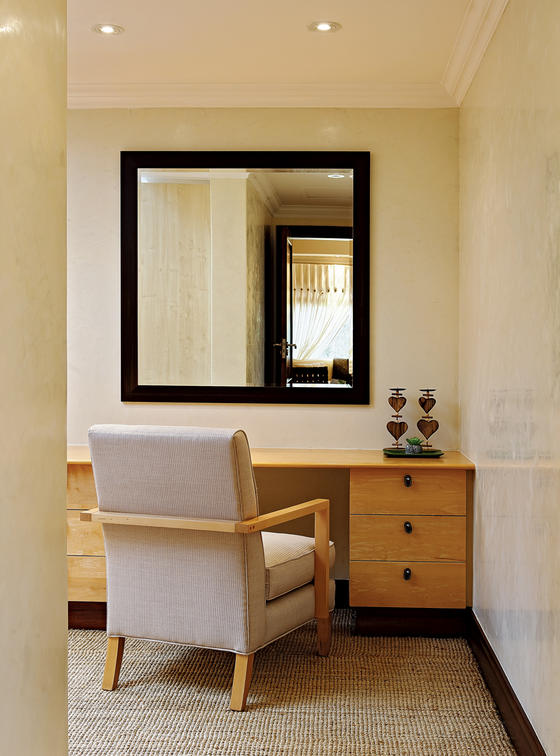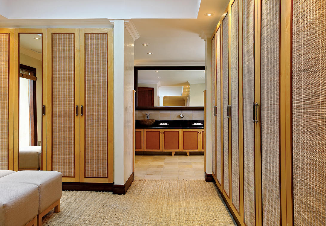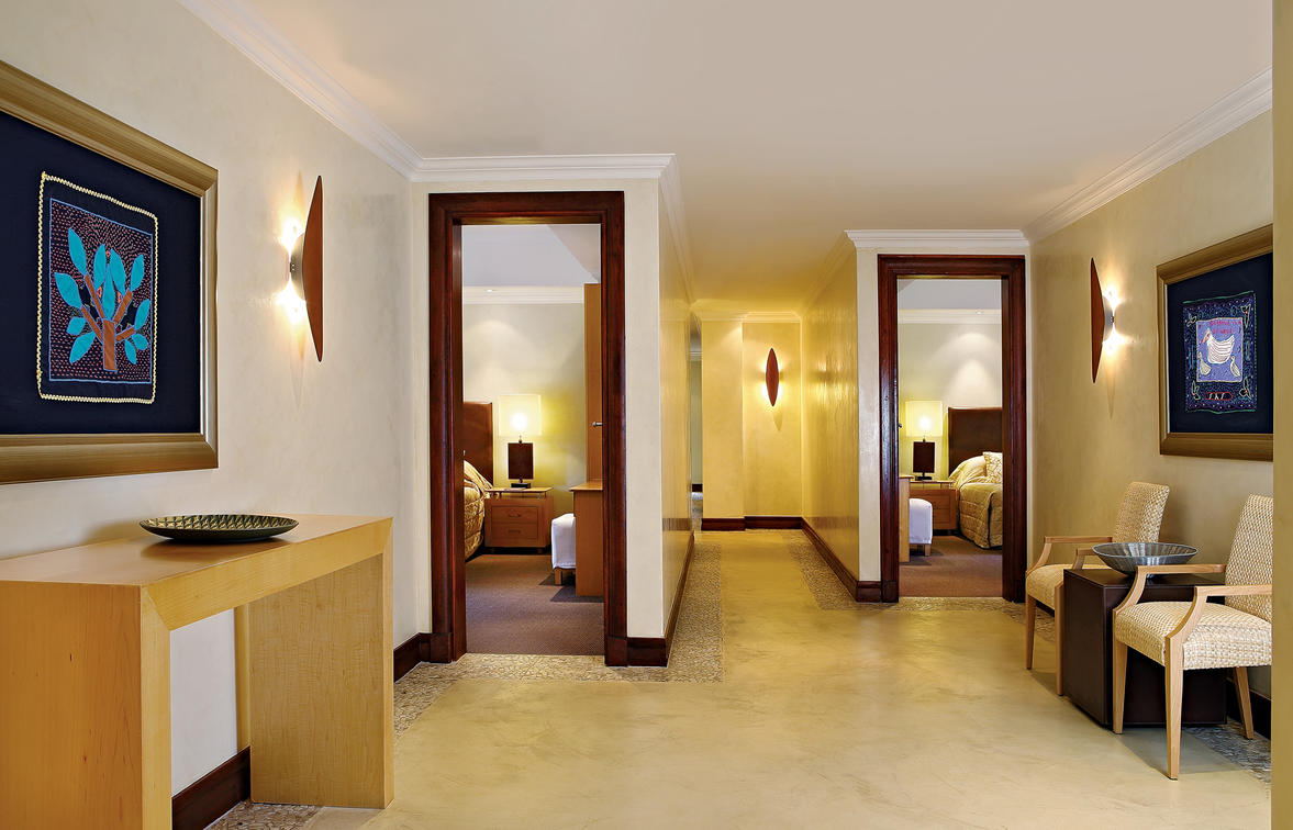 La suite Presidential tiene un baño doble en suite y vestidor para él y para ella, así como un comedor privado con cocina americana y una sala de estar privada con TV.
