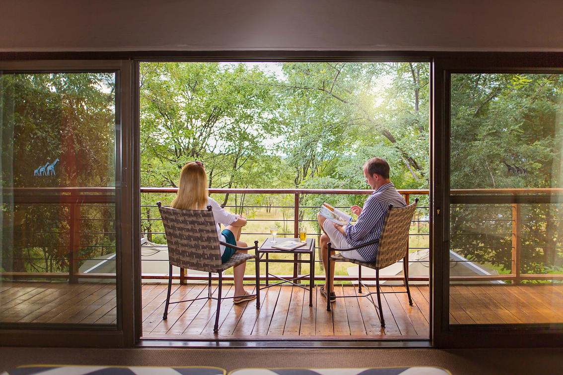 • Patio, mesa, sillas y sombrilla con asientos suficientes para seis personas.