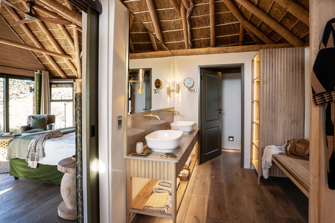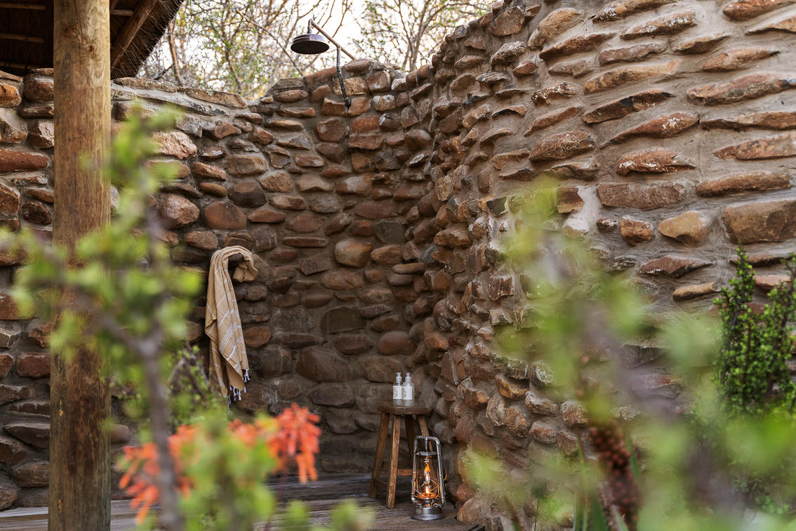 Nueve lujosas suites cuentan con baño privado, duchas interiores y exteriores, WC separado, lavabos dobles, bares personales y porches cubiertos con piscinas de inmersión. La decoración es de inspiración africana clásica y contemporánea, con paletas naturales de telas en tonos tierra. El peltre y el vidrio añaden un glamour sin esfuerzo pero discreto a los muebles, mientras que artefactos como cáscaras de huevo de avestruz, cueros y cuernos crean sutiles puntos de interés y relevancia para los alrededores del lodge.