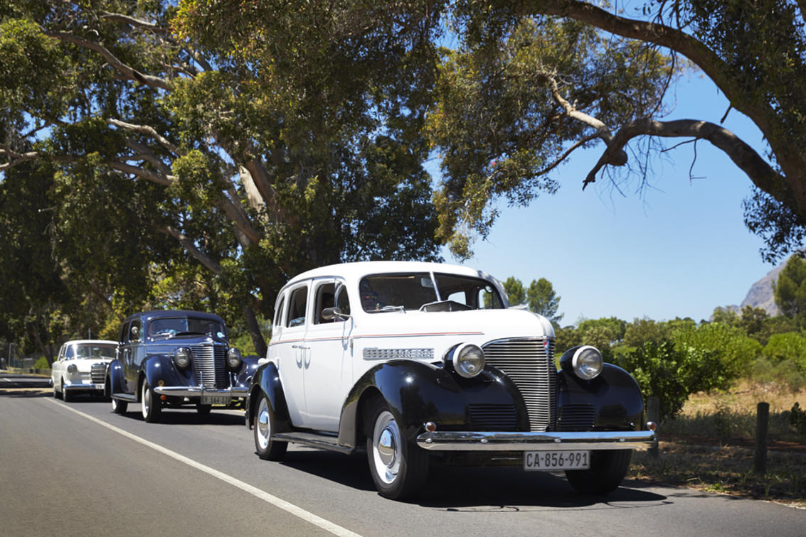 Viaje con chófer en un reluciente automóvil clásico a los majestuosos viñedos del Cabo para una degustación o un almuerzo. Explore el valle de Constantia, famoso por sus vinos blancos, el pintoresco valle de Franschhoek o las fincas de primera clase de Stellenbosch.