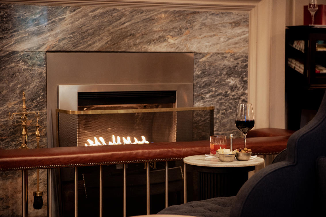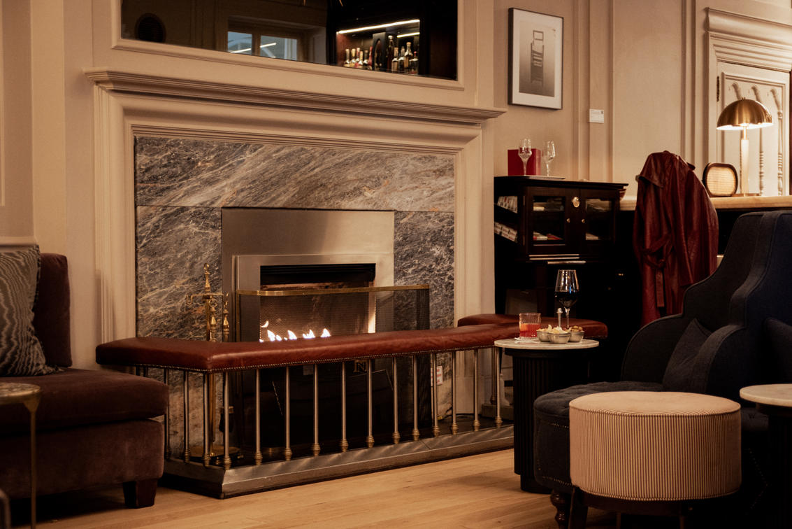 La elegante decoración celestial del bar, los toques extravagantes y los cómodos sofás crean un ambiente relajante, ya sea que esté mirando a la gente desde la terraza en verano o acurrucado junto al fuego con una copa de vino tinto en invierno.
