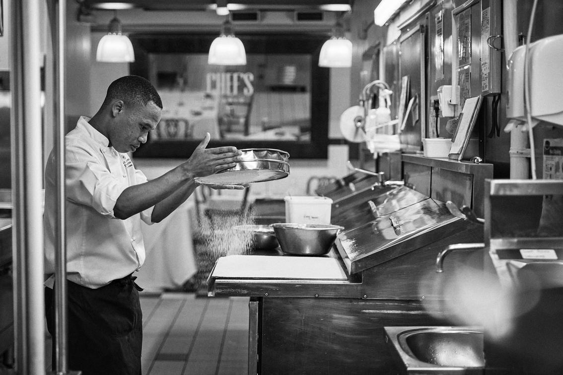 Escuche los laboriosos sonidos de picar, remover y chisporrotear. Respire los aromas de suculentas carnes y ricas salsas. Siente la energía creativa del talentoso equipo en acción a toda velocidad.