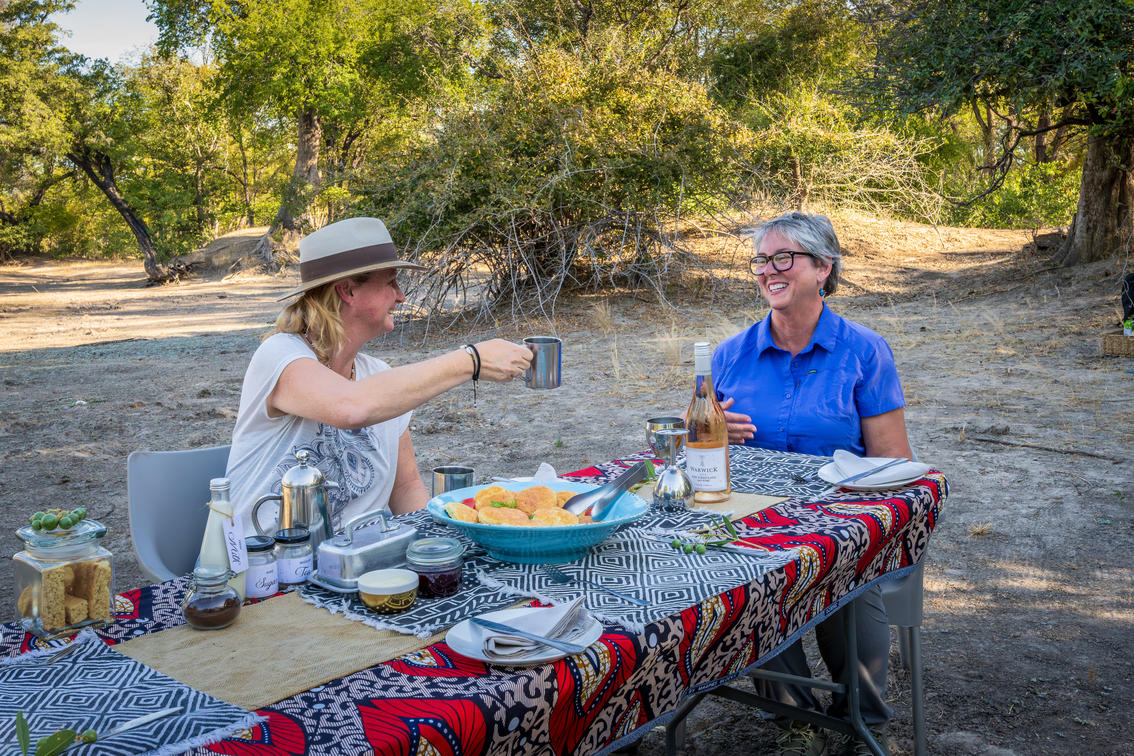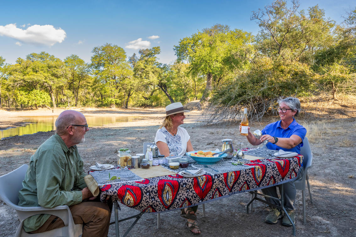 Los picnics junto al río en el campamento principal de Chitembe son una de las experiencias más encantadoras e icónicas que se ofrecen, y complementan perfectamente las actividades tradicionales de observación de animales. Representan la esencia de un safari en Mana Pools: íntimos, pintorescos y profundamente conectados con la naturaleza.