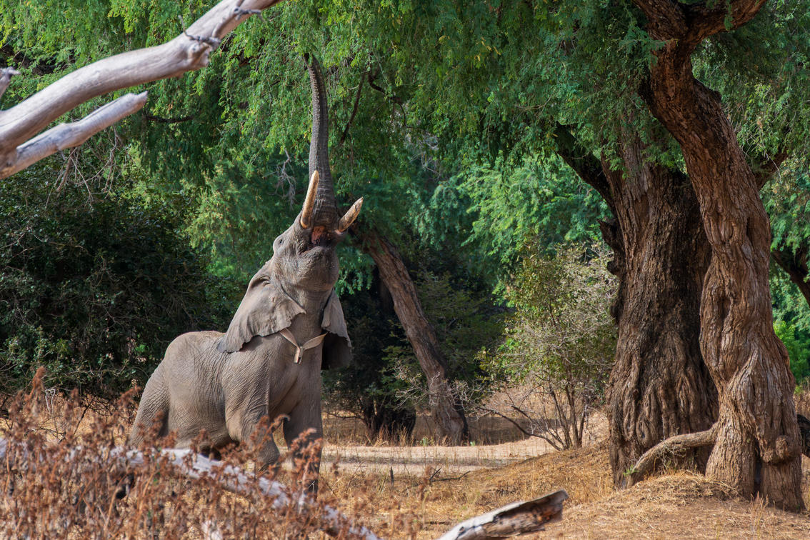 El safari matutino desde el campamento principal de Chitembe comienza al amanecer, un momento mágico en el que la selva cobra vida. Con su guía experimentado, partirá en un vehículo 4x4 con los costados abiertos, diseñado para ofrecer vistas sin obstáculos y excelentes oportunidades fotográficas. El aire más fresco de la mañana con frecuencia significa que depredadores como leones, leopardos y hienas permanecen activos, ya sea dirigiéndose a sus lugares de descanso diurnos o merodeando. Mana Pools es famosa por sus grandes elefantes toros, algunos de los cuales muestran el comportamiento único de ponerse de pie sobre sus patas traseras para alcanzar las nutritivas manadas de albida que se encuentran en la parte superior de los árboles. Es probable que te encuentres con estas magníficas criaturas, junto con vastas manadas de búfalos, cebras, impalas y otras especies de antílopes, que se dirigen al Zambeze para tomar algo por la mañana. Los guías de Chitembe están muy bien informados sobre la ecología y el comportamiento de los animales del parque, y te brindan información perspicaz y te ayudan a detectar incluso a las criaturas más camufladas. La proximidad al Zambeze también ofrece increíbles oportunidades para observar aves, ya que hay una gran cantidad de especies de aves activas a lo largo de las orillas del río.