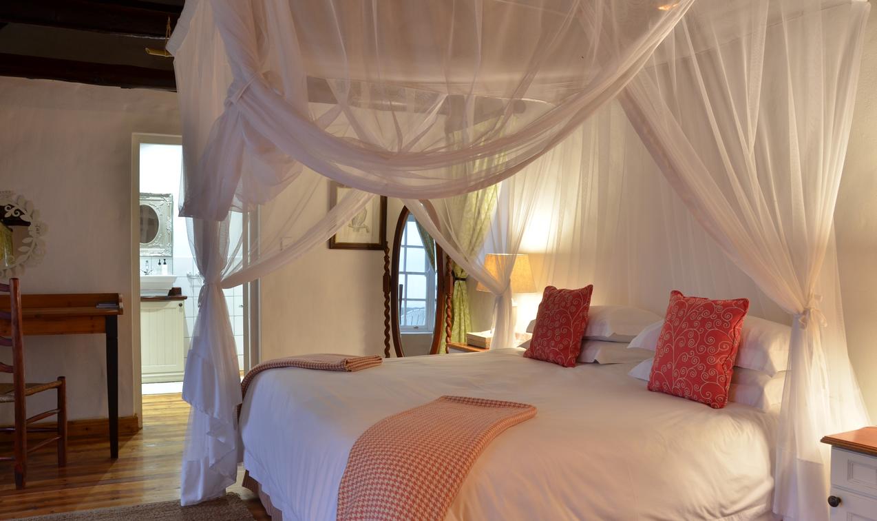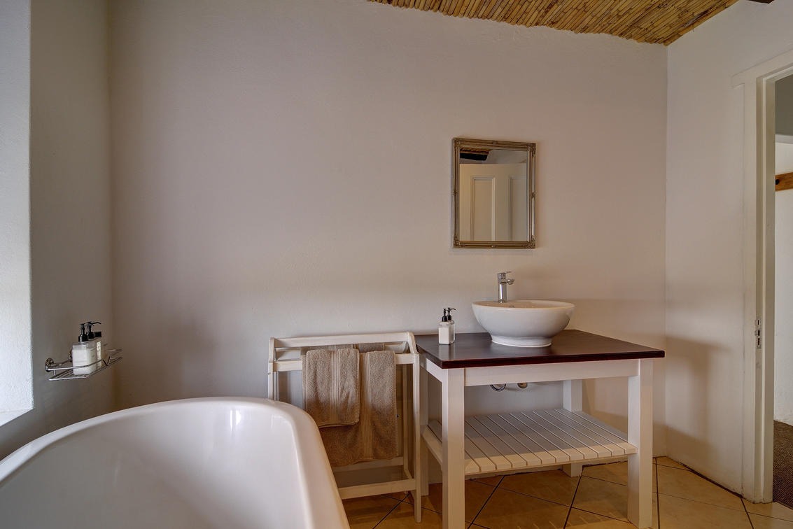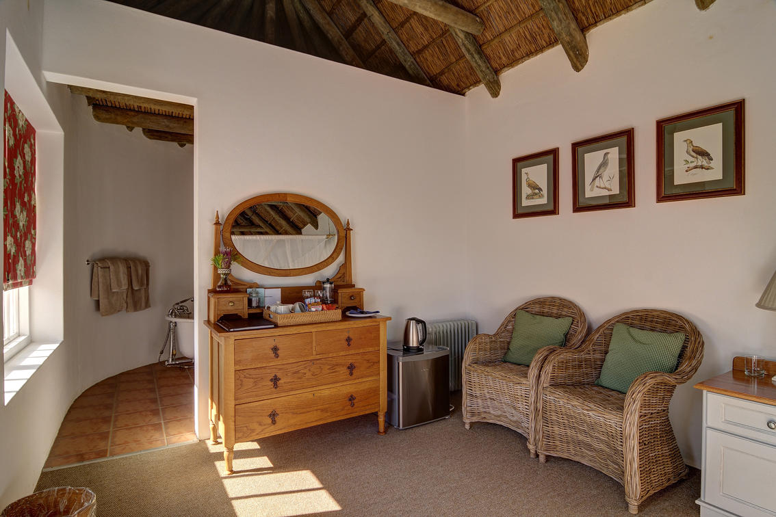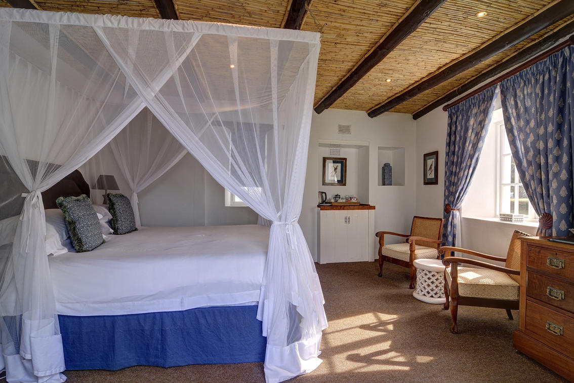 La suite Figtree cuenta con aire acondicionado y se encuentra en el patio con sus magníficas higueras silvestres. Se encuentra entre la cabaña Cloete y la casa solariega de Opstal. Cuenta con baño privado con bañera y ducha y tiene capacidad para 2 personas. La cama tiene una mosquitera y hay una nevera de bar y una bandeja de café y té disponibles. La cena y el desayuno están incluidos en la tarifa y el restaurante está a pocos pasos de distancia. Se limpia todos los días.