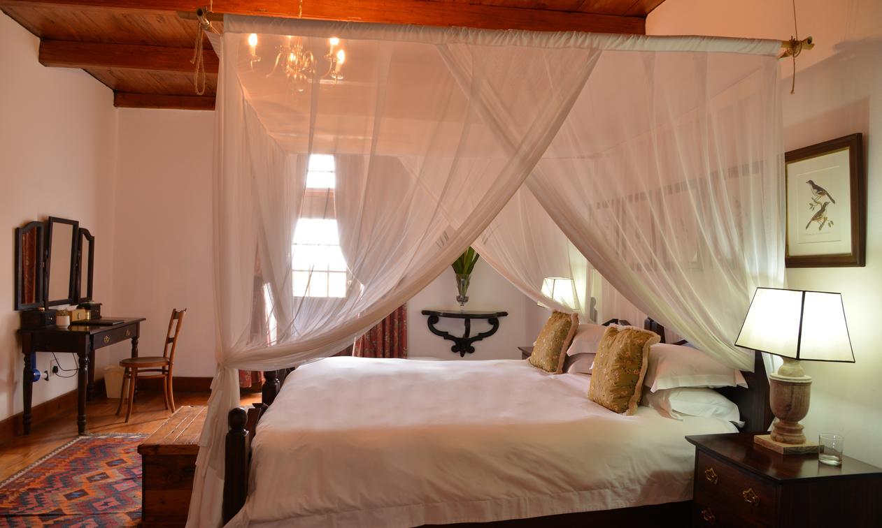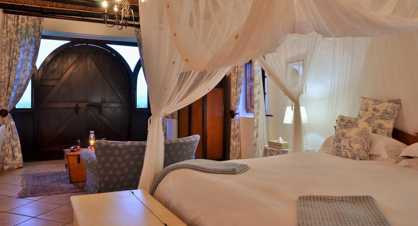 Las Cloete Suites están al lado del patio, muy cerca del restaurante Fig Tree. Dos de las suites (1 y 2) ofrecen vistas a los pastizales donde pastan bontebok, eland y cebras de montaña, entre otros, mientras que las suites Cloete 3 y 4 ofrecen una vista espectacular de las antiguas y majestuosas higueras del patio. Cada suite está bellamente decorada y tiene una zona de estar y un baño privado con bañera y ducha. La suite Cloete 1 tiene una hermosa chimenea para esas frías noches de invierno. Las 4 suites tienen aire acondicionado, nevera de bar, mosquiteras y bandejas de café y té. La cena y el desayuno están incluidos en la tarifa.