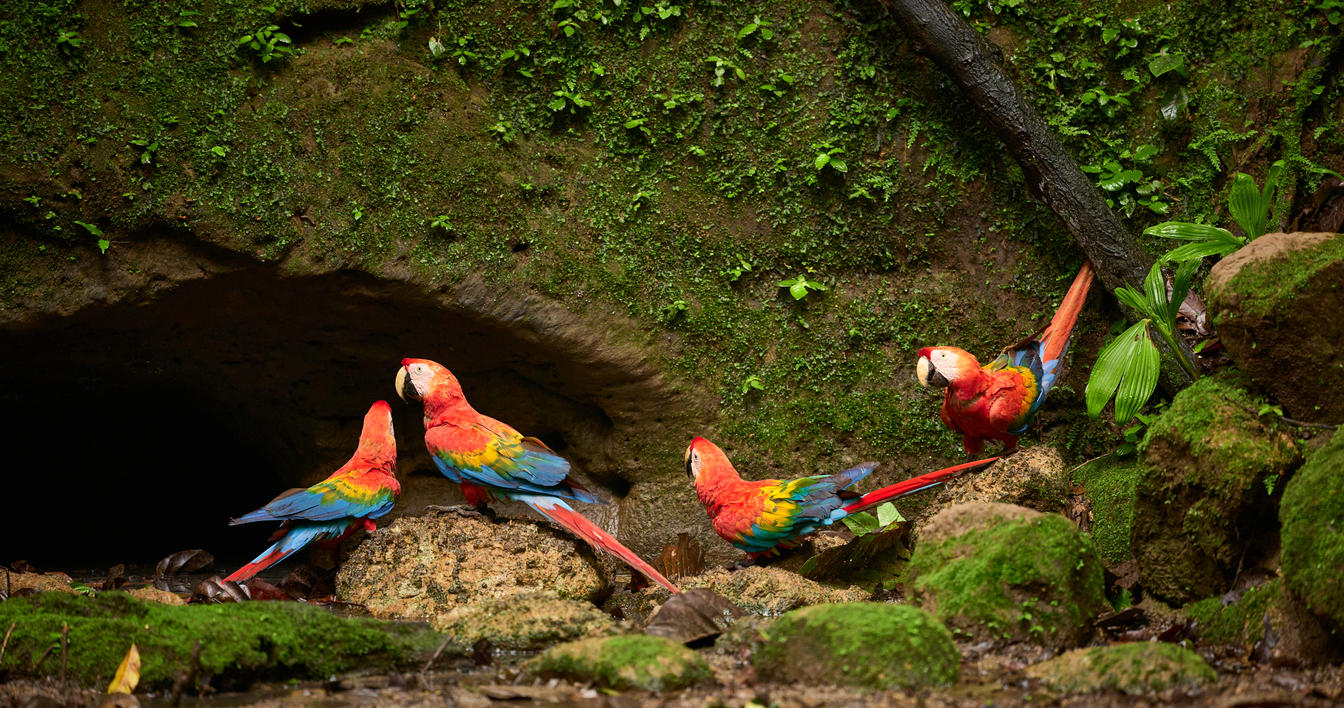 Hay dos lugares en la orilla sur del río Napo (dentro del Parque Nacional Yasuní) donde se reúnen loros, periquitos e incluso guacamayos. Vienen para obtener los minerales de la arcilla que les ayudan a digerir mejor los frutos y las semillas.