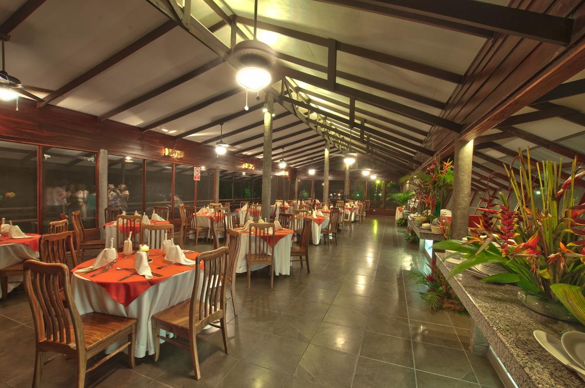 El restaurante Flor de Pachira se encuentra ubicado en medio del bosque, mientras disfrutas de la comida estilo buffet, puedes apreciar la vista, la flora y la fauna del lugar.
