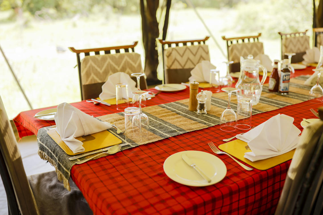 Porini Lion Camp incluye comidas, bebidas (ginebra, vodka, vino, cerveza, refrescos, zumos y agua mineral). Las comidas del Porini Lion Camp se elaboran para complementar la autenticidad de la experiencia de safari. Todas las comidas se sirven sobre una base de menú, con un desayuno abundante y cálido por la mañana, almuerzos vigorizantes y cenas de tres platos. Todo en el campamento es casero y cocinado con especial cuidado y atención. El campamento atiende a todos los requisitos dietéticos, y esto se requerirá una vez confirmada la reserva.