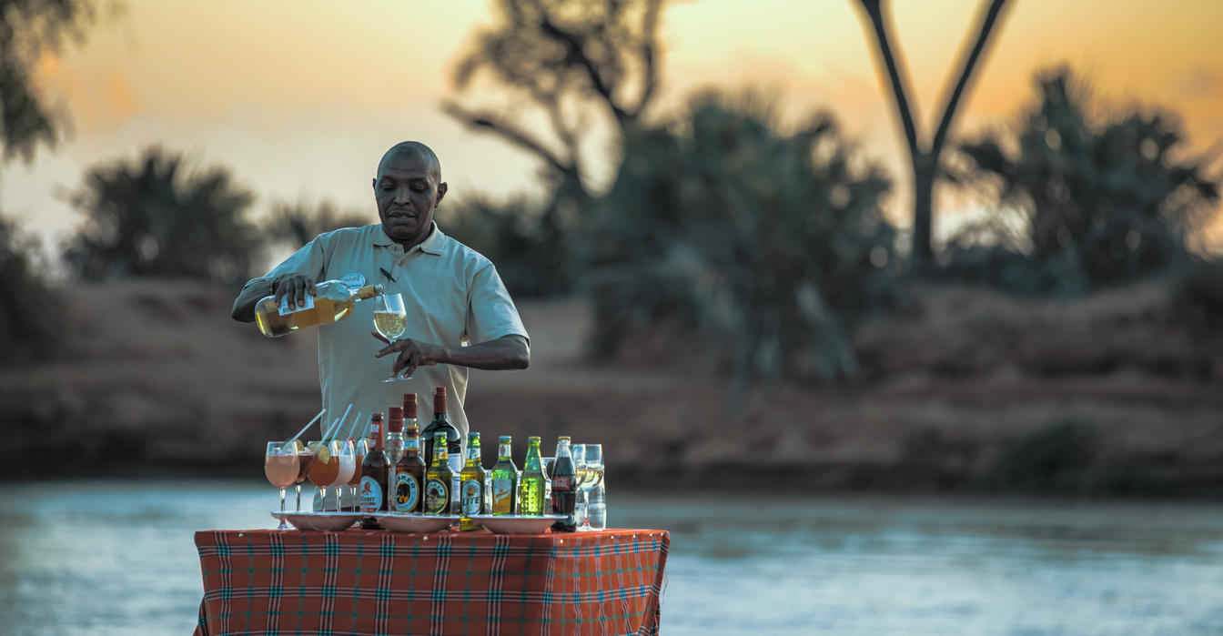 Comience el día con un desayuno gourmet en la selva servido bajo un cielo de acacia, acompañado de vino espumoso frío. Rodeada de los cantos de los pájaros a primera hora de la mañana y de la suave luz del amanecer, esta experiencia realza su safari con un ambiente inolvidable.