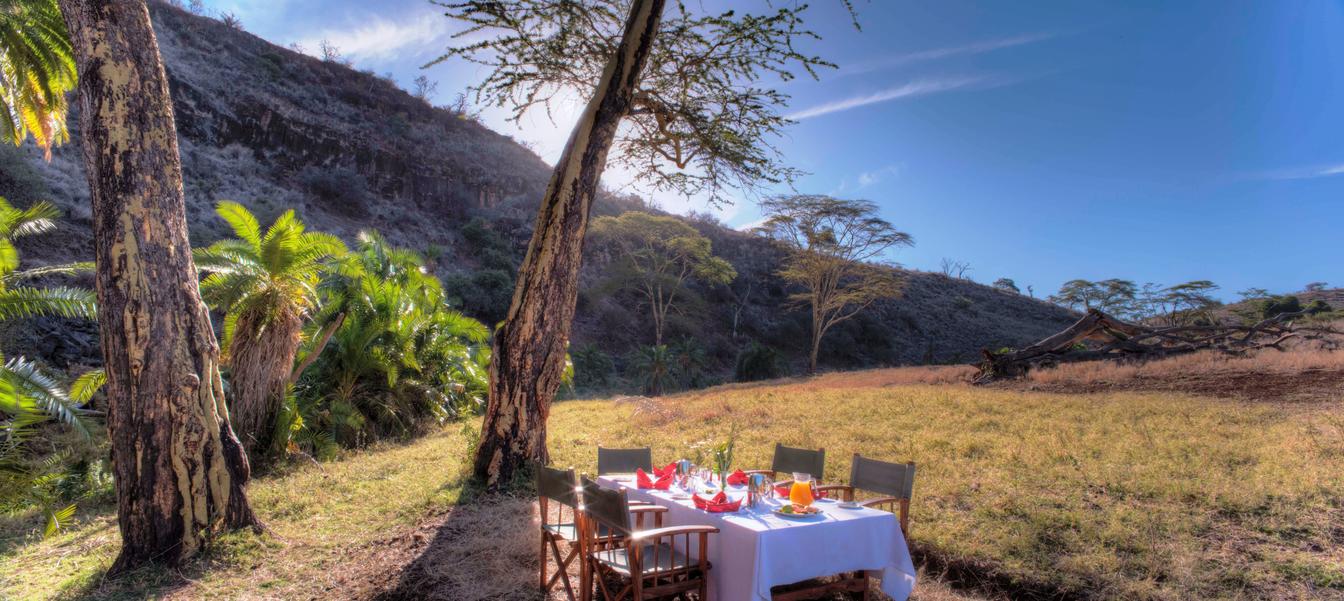 Pocos lugares tienen amaneceres tan dramáticos como África. Desde Kifaru House los huéspedes pueden contemplar el espléndido amanecer y disfrutar de un abundante desayuno al aire libre, en medio de las llanuras, rodeado de vida silvestre. Siéntase parte de la naturaleza con las espectaculares vistas, los aromas, los colores y el espectáculo de vida silvestre a su alrededor.