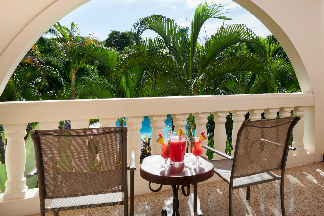 Esta espaciosa suite está ubicada en un tercer piso en el área Tropicana y ofrece una amplia terraza con jacuzzi sobre la piscina y jardines. Es ideal para su luna de miel y escapada romántica.