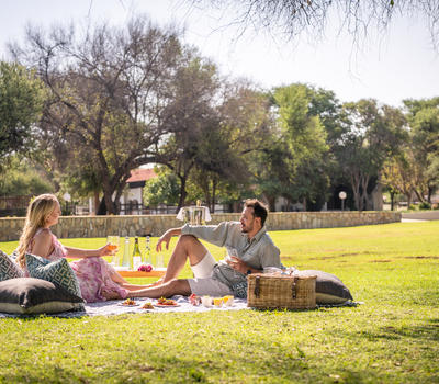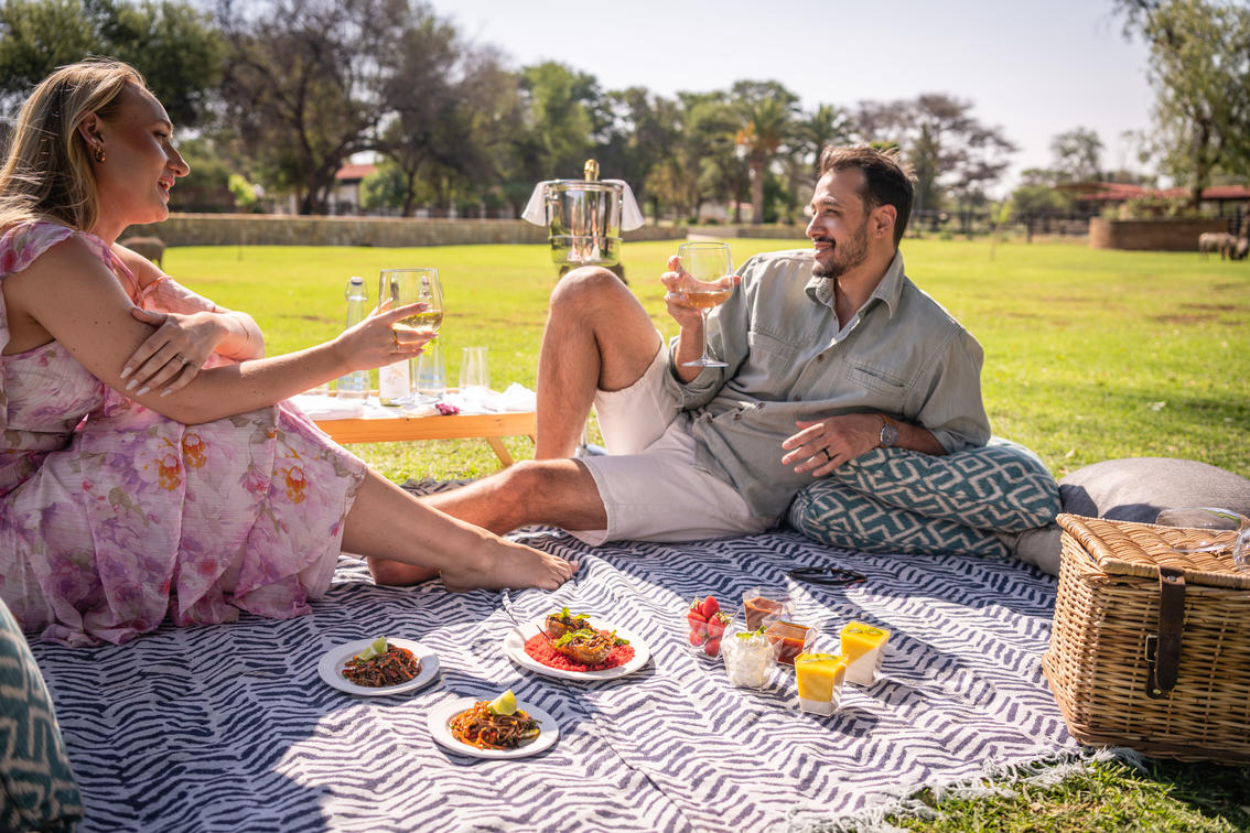 Una de las principales atracciones de la finca es un paseo al atardecer hasta Hilltop, donde los huéspedes pueden disfrutar de una impresionante vista de 360° sobre las montañas Otjihavero y ver la puesta de sol con los atardeceres en la mano. También pueden experimentar cómo era la vida en una finca tradicional namibiana en años pasados, con un juego de naturaleza matutino o vespertino a través de la reserva natural separada de 2 000 hectáreas, a lo largo del río Swakop. La vida silvestre que se encuentra aquí incluye jirafa, ñus azul y negra, oryx, kudu, hartebeest, eland, warthog, babuino y especies más pequeñas de antílopes como el steenbok. La orilla del río es el paraíso de los pájaros.