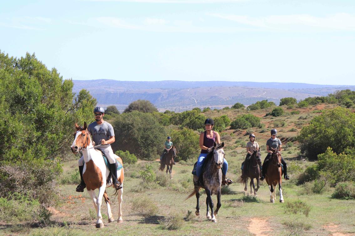 Amakhala Horse Trails ofrece una perspectiva única del monte: elevados a caballo, los jinetes pueden disfrutar de increíbles vistas del paisaje circundante mientras se deslizan con facilidad y tranquilidad por terrenos a menudo inaccesibles en vehículo. La naturaleza discreta de un safari a caballo también permite increíbles avistamientos de animales: los ciclistas pueden acercarse hasta 10 a 15 metros de la vida silvestre como eland, ñu, cebra, hartebeest y jirafa. Los senderos brindan la oportunidad de explorar 1700 hectáreas de arbustos africanos a caballo, incluida la oportunidad de galopar por llanuras abiertas, dar un trote lento para apreciar las vistas o caminar tranquilamente a lo largo de las riberas apartadas de los ríos. Los safaris a caballo suelen durar de dos a tres horas, y la velocidad del recorrido se ajusta al nivel de experiencia de los ciclistas. Esto le da tiempo suficiente para observar la vida silvestre y encontrar el lugar perfecto para descansar a los caballos y disfrutar de refrigerios y refrigerios.
