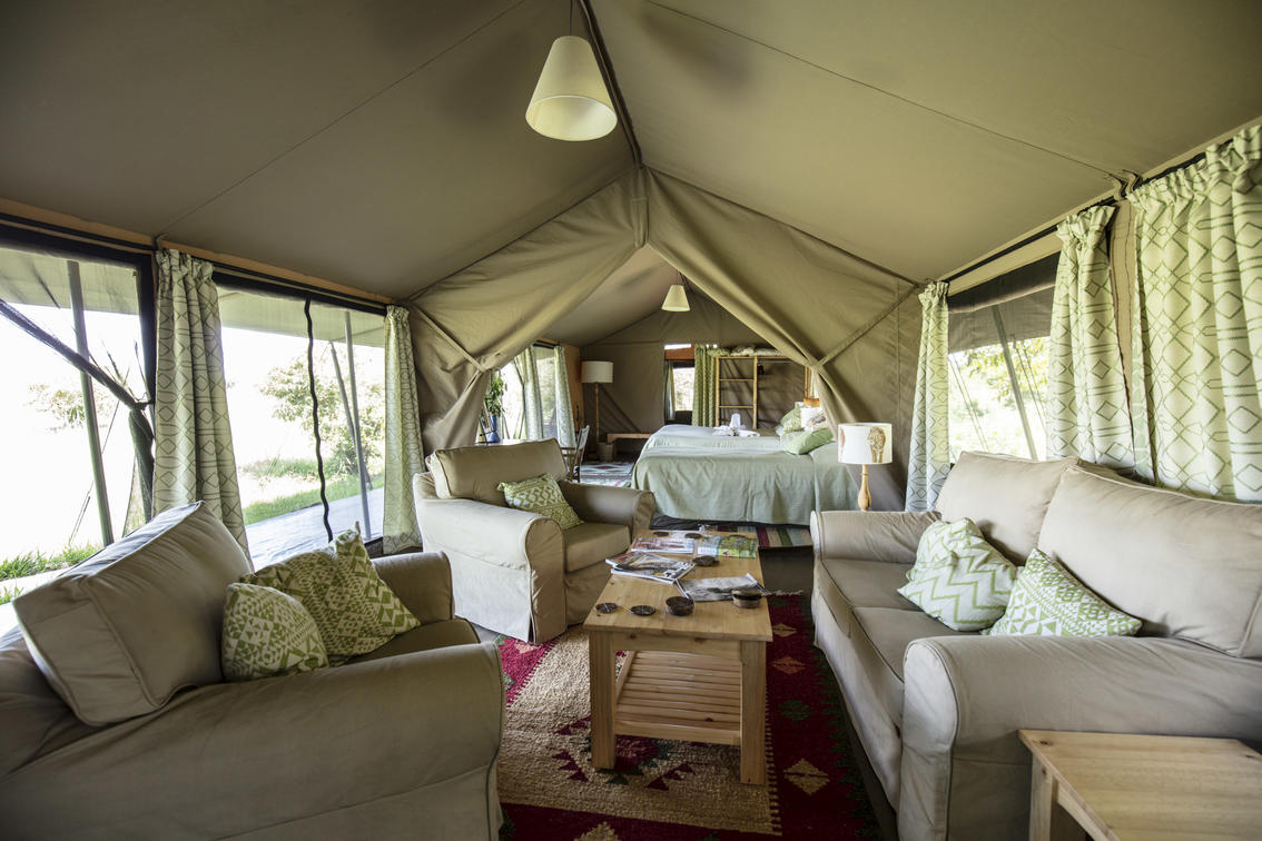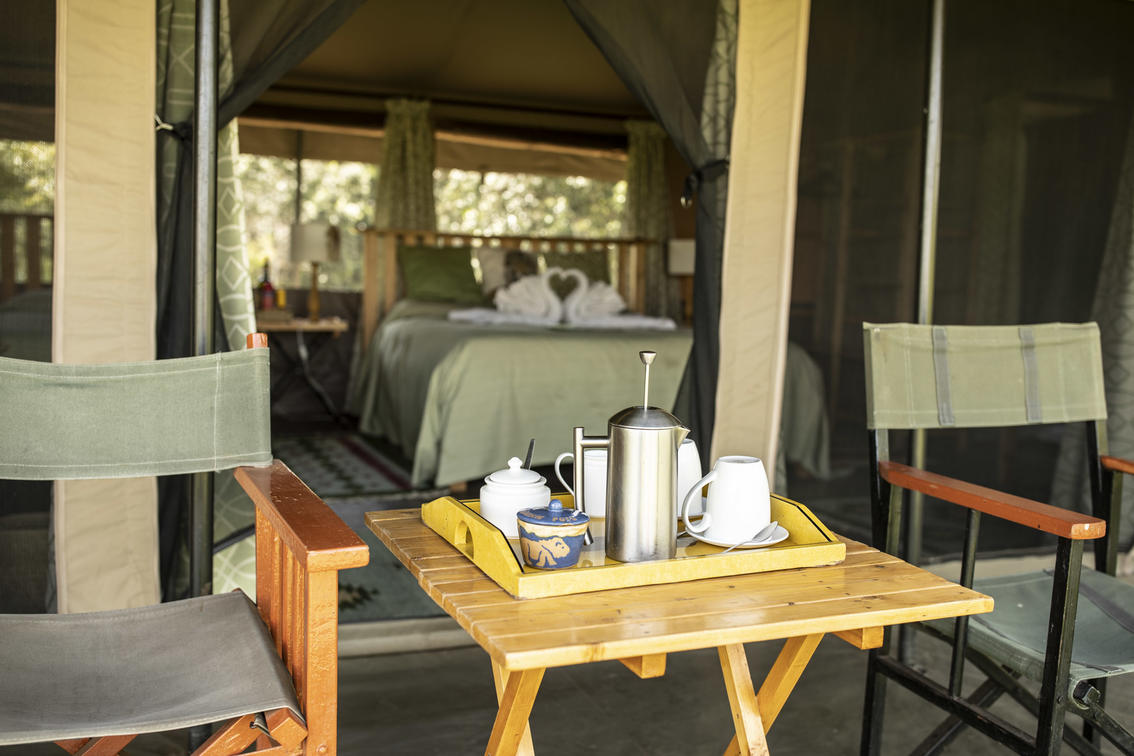 Porini Lion Camp - Tienda de campaña con vistas exteriores, bien espaciada para ofrecer privacidad.
