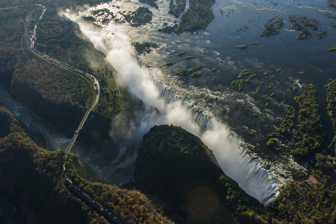 A World Heritage Site, Victoria Falls straddles the border between Zimbabwe and Zambia and is the most expansive curtain of water in the world. Behold the "Smoke that Thunders", Victoria Falls, is known to locals as "Mosi-oa-Tunya" for valid reasons. View its dramatic roaring waters and a mini rainforest that clings to the Falls’ edge, with a variety of mammals and birds. Plummeting some hundred metres into a basalt gorge, the spectacular spray, seen from kilometres away, is beguiling.
