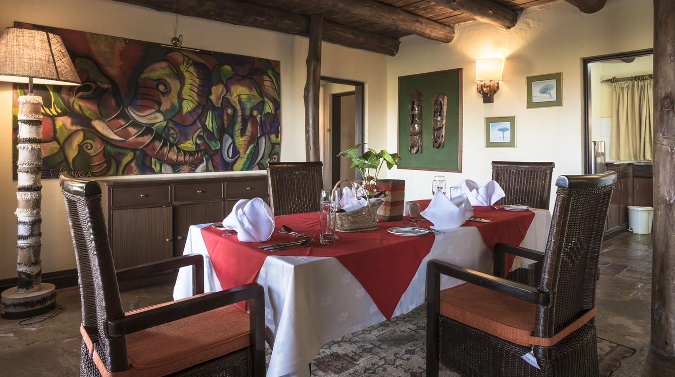 The dining area can be set up at any preferred point: indoors, the terrace, or outside