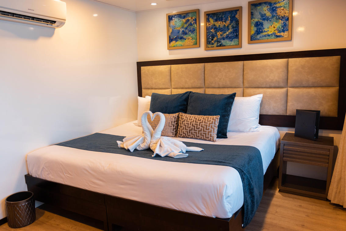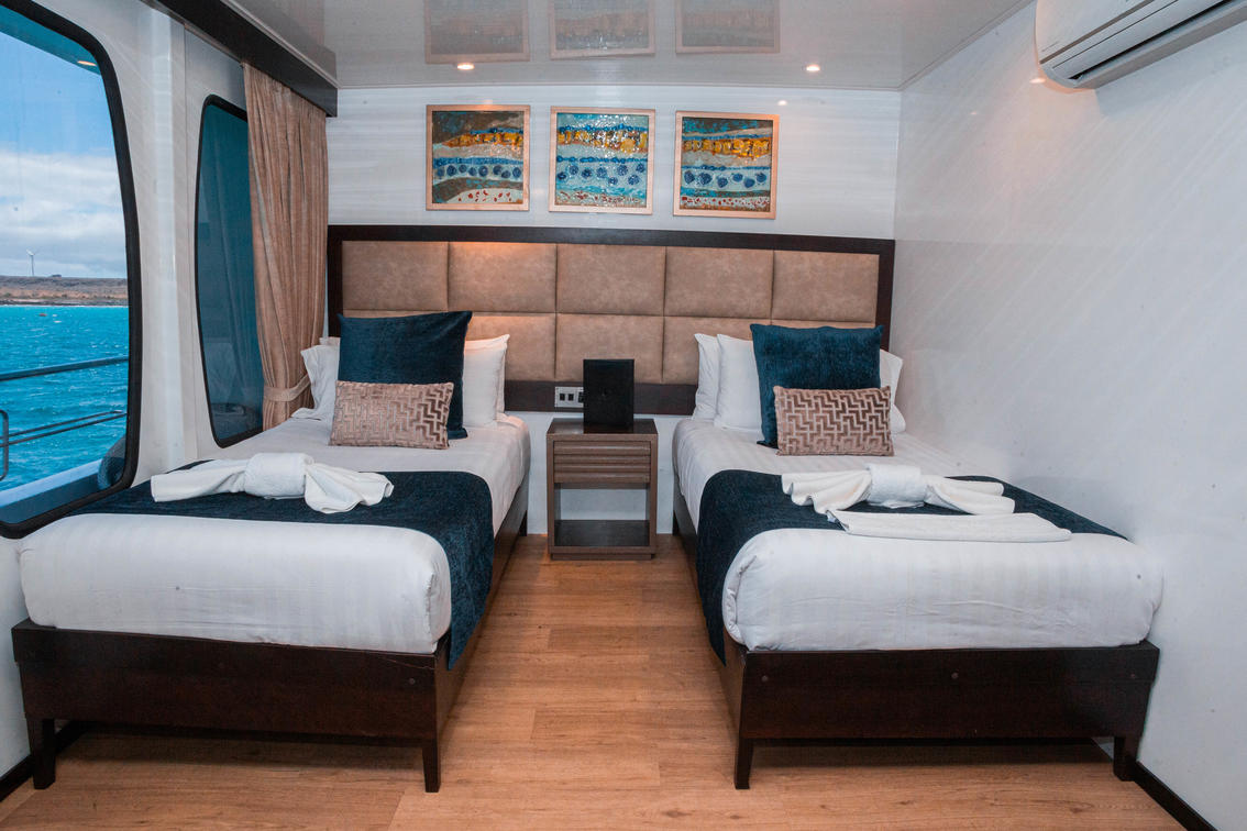 Ce type de cabine est équipé d'une salle de bain privée, de placards spacieux, d'oreillers en plumes, de draps en coton, d'eau chaude/froide, de la climatisation, d'un sèche-cheveux, d'un téléphone interne, d'un coffre-fort et d'un haut-parleur.