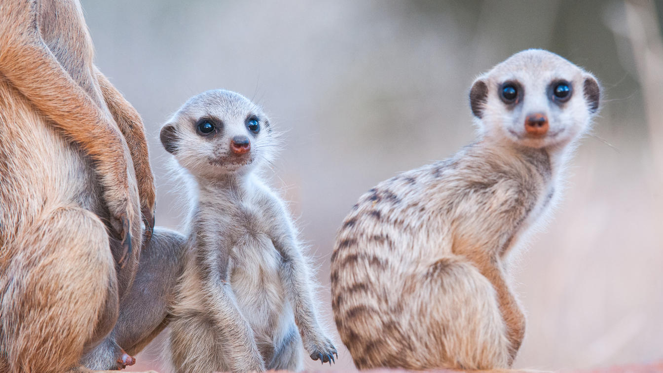 Joignez-vous à un groupe de suricates habitués alors qu'ils sortent de leurs terriers et se réchauffent au soleil levant ou qu'ils rentrent à la maison à la fin de la journée et se marient et jouent au crépuscule.