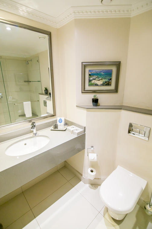Salle de bain avec douche et baignoire, lit king size, linge de percale, climatisation et chauffage, cafetière/théière, coffre-fort, sèche-cheveux, TV avec chaînes satellite sélectionnées et minibar disponible sur demande.