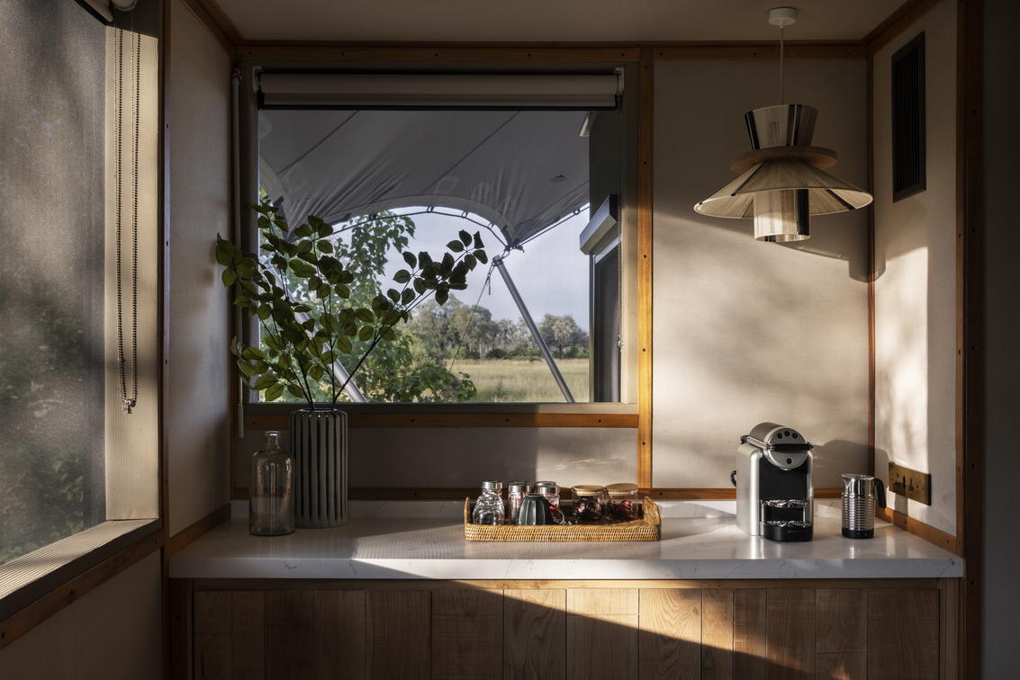 La touche personnalisée et l'hébergement en tente au style impeccable sont fortement influencés par Hélène et Dave Hamman, dont les célèbres œuvres photographiques représentant des chiens sauvages africains et des grands félins ornent les murs. Le personnel chaleureux, généreux et fidèle du Wilderness Chitabe garantit une expérience client parfaite.