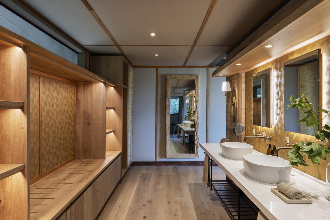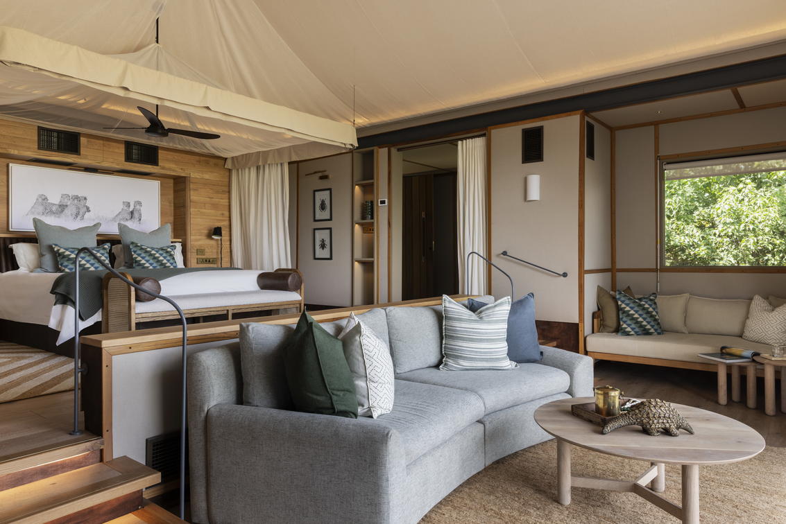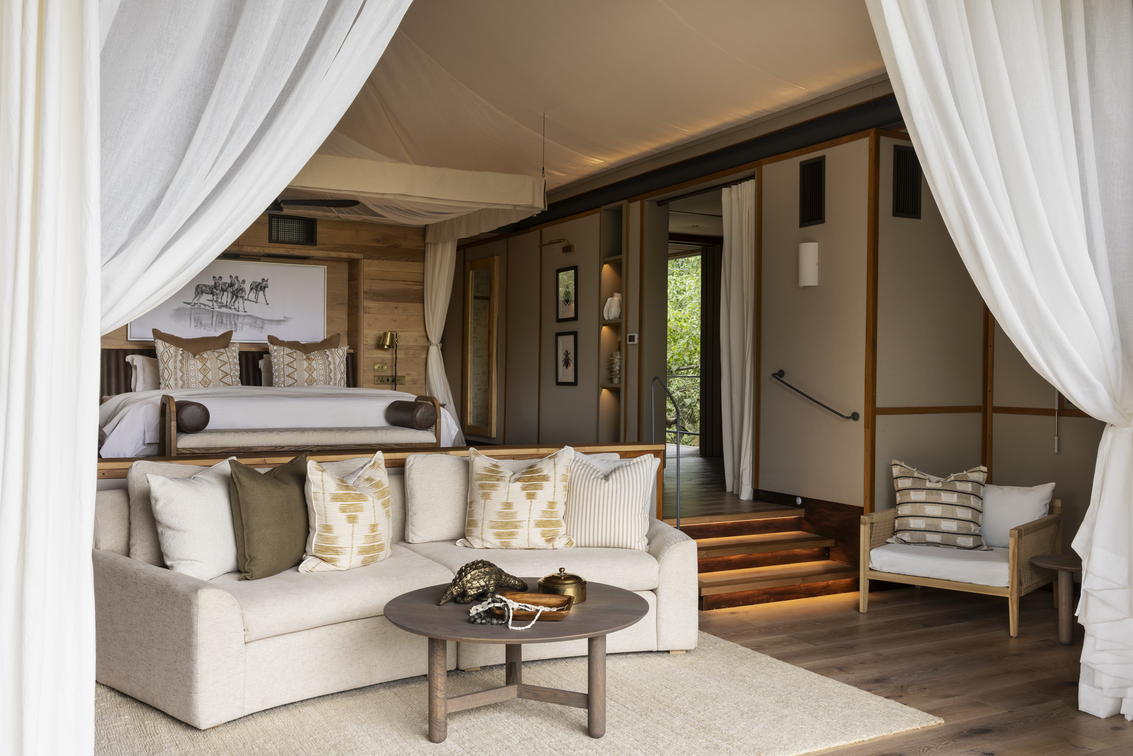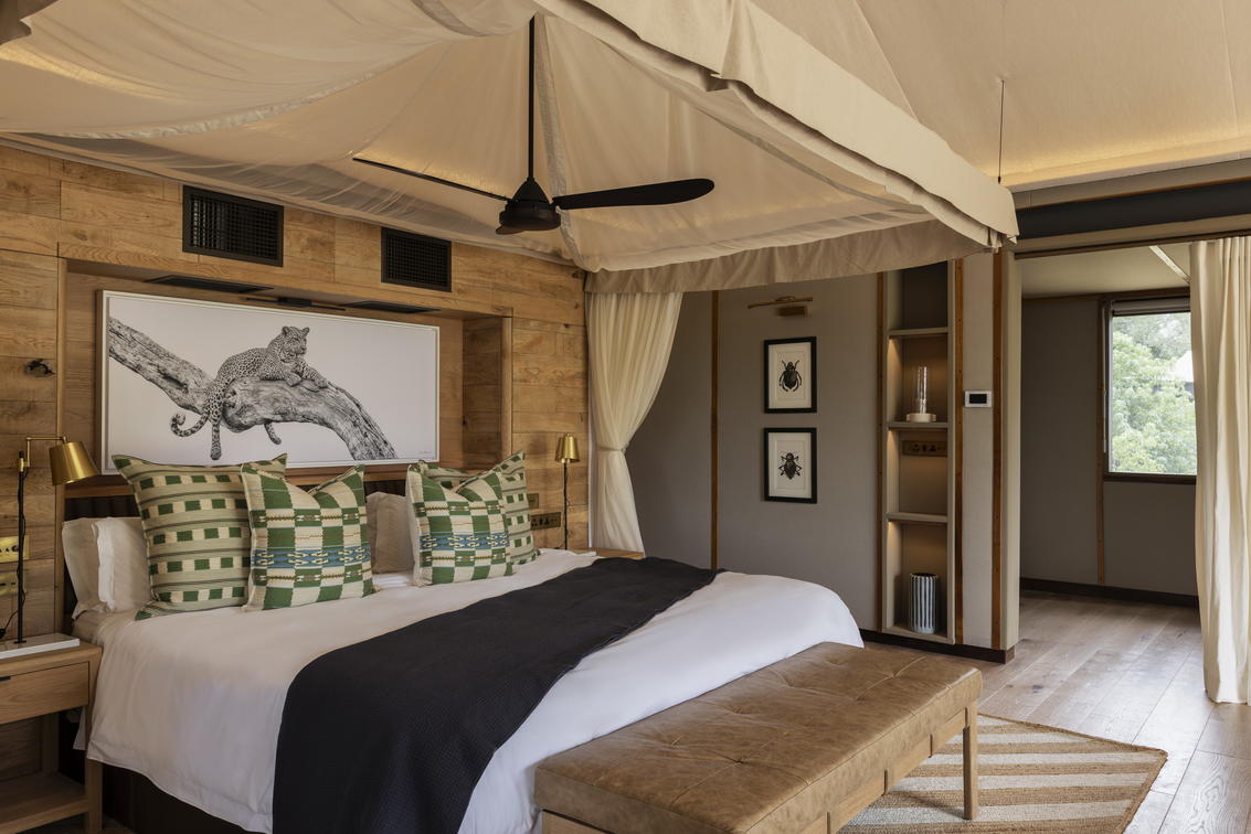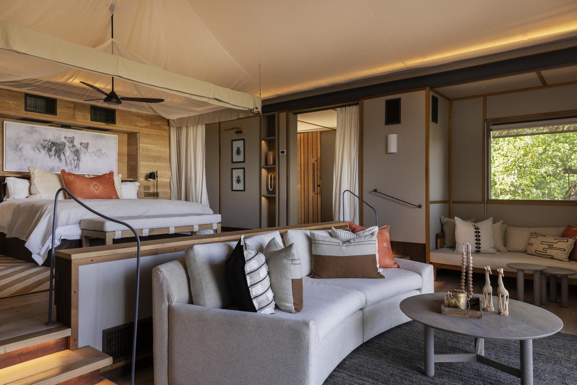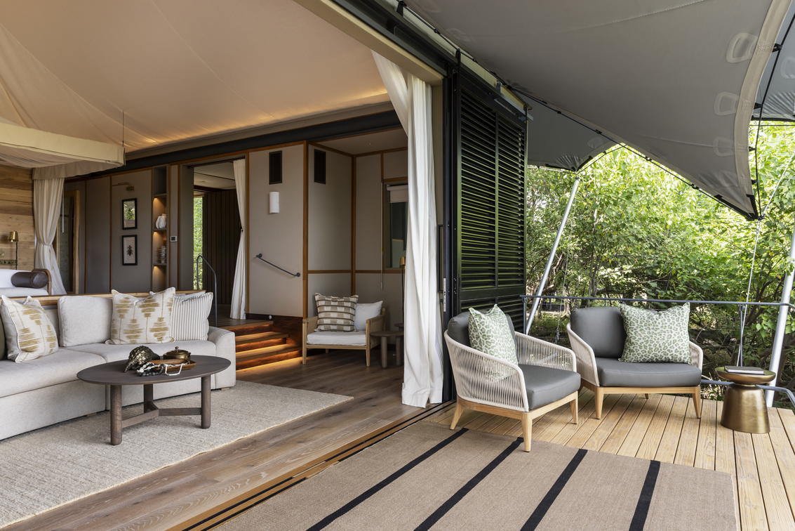 Chaque tente a été décorée individuellement et dispose de lits jumeaux, ainsi que d'une salle de bains privative comprenant des douches intérieures et extérieures.