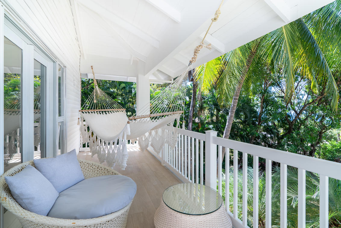 • Balcon/terrasse privés avec hamacs, tous deux offrant une vue sur l'océan