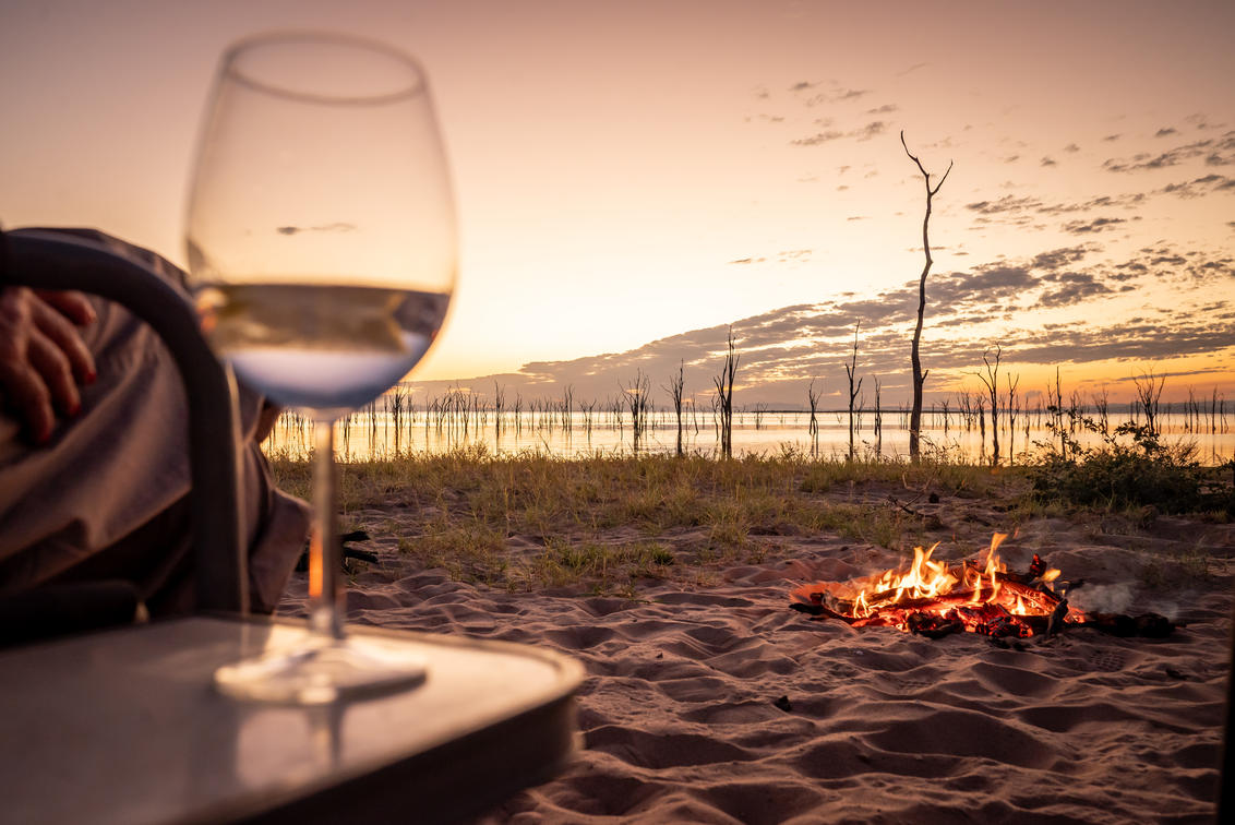 Enlevez vos chaussures et sentez le sable sous vos pieds tout en admirant les couleurs époustouflantes du coucher de soleil africain sur le lac Kariba.