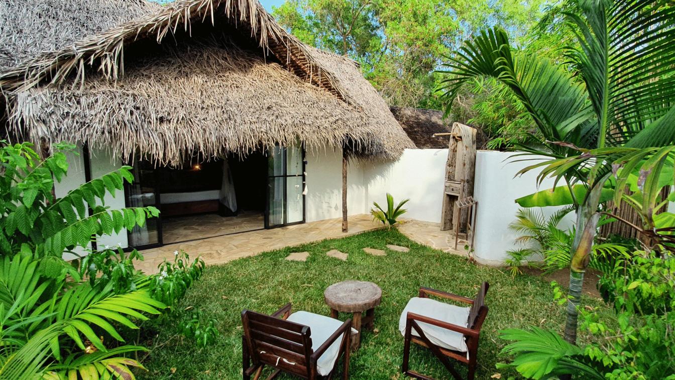 Créé à partir de matériaux locaux et d'une décoration traditionnelle de Pemban avec un confort contemporain. De plus, un petit balcon offre à nos clients un endroit ombragé pour se détendre dans le jardin.