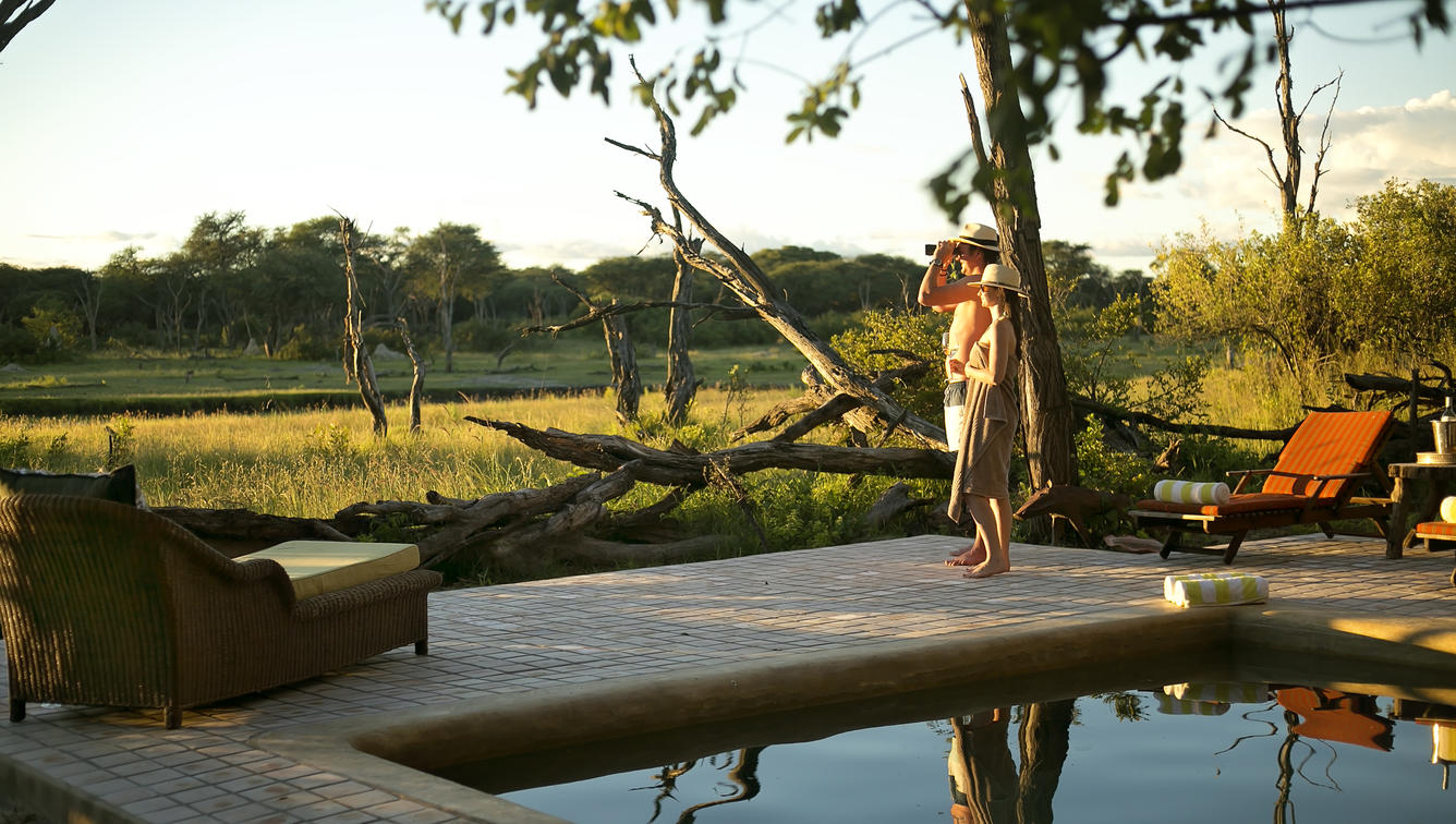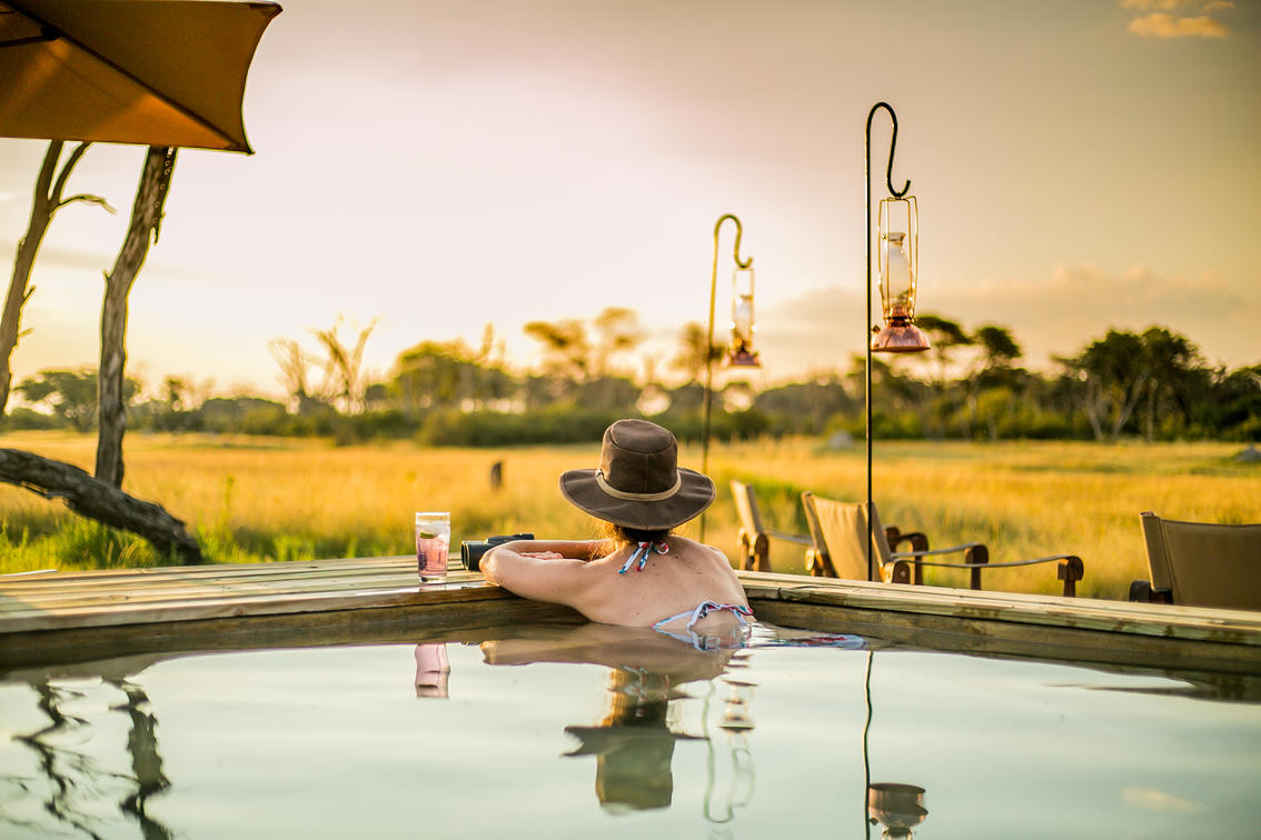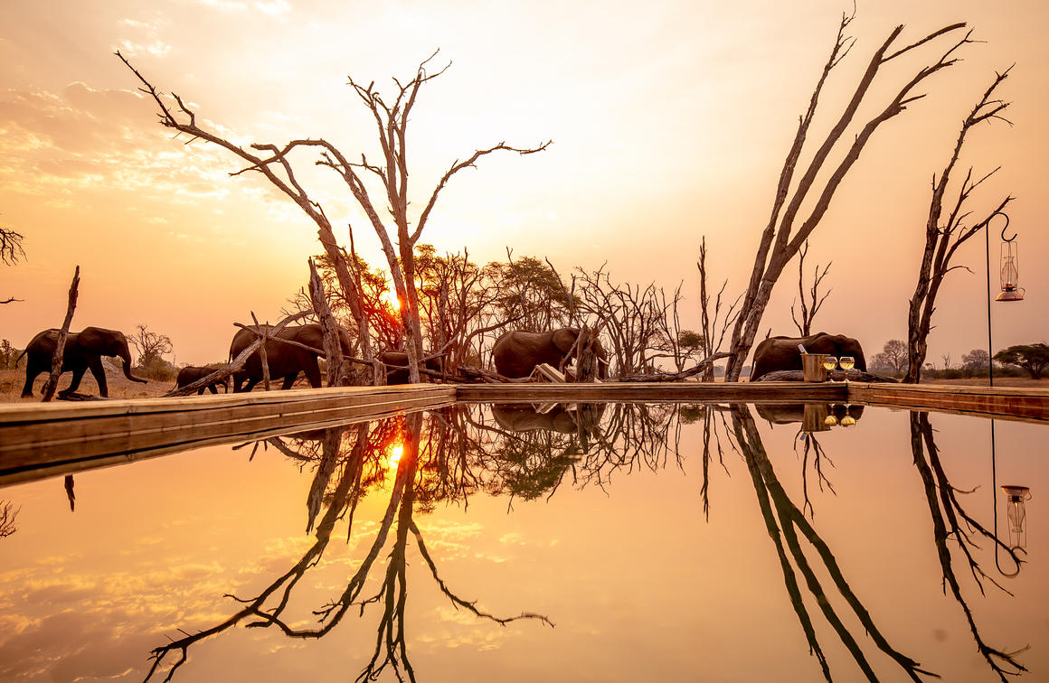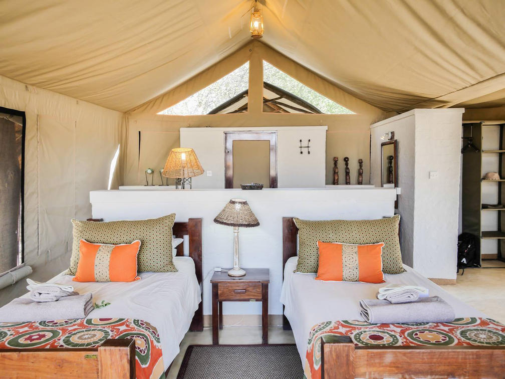 Le Hide peut accueillir jusqu'à 20 personnes dans dix tentes de luxe confortables et spacieuses, familiales de luxe et lune de miel de luxe. Les tentes ont une myriade de configurations différentes avec baignoires et douches intérieures et/ou extérieures. Ils sont refroidis par ventilateur pour votre confort en été et ont des couvertures supplémentaires chaudes et des bouteilles d'eau chaude pour les mois d'hiver frais. Chacune dispose d'une véranda privée d'où vous pourrez vous divertir par les allées et venues d'une grande variété de gibier au trou d'eau. Une tente est adaptée aux fauteuils roulants.