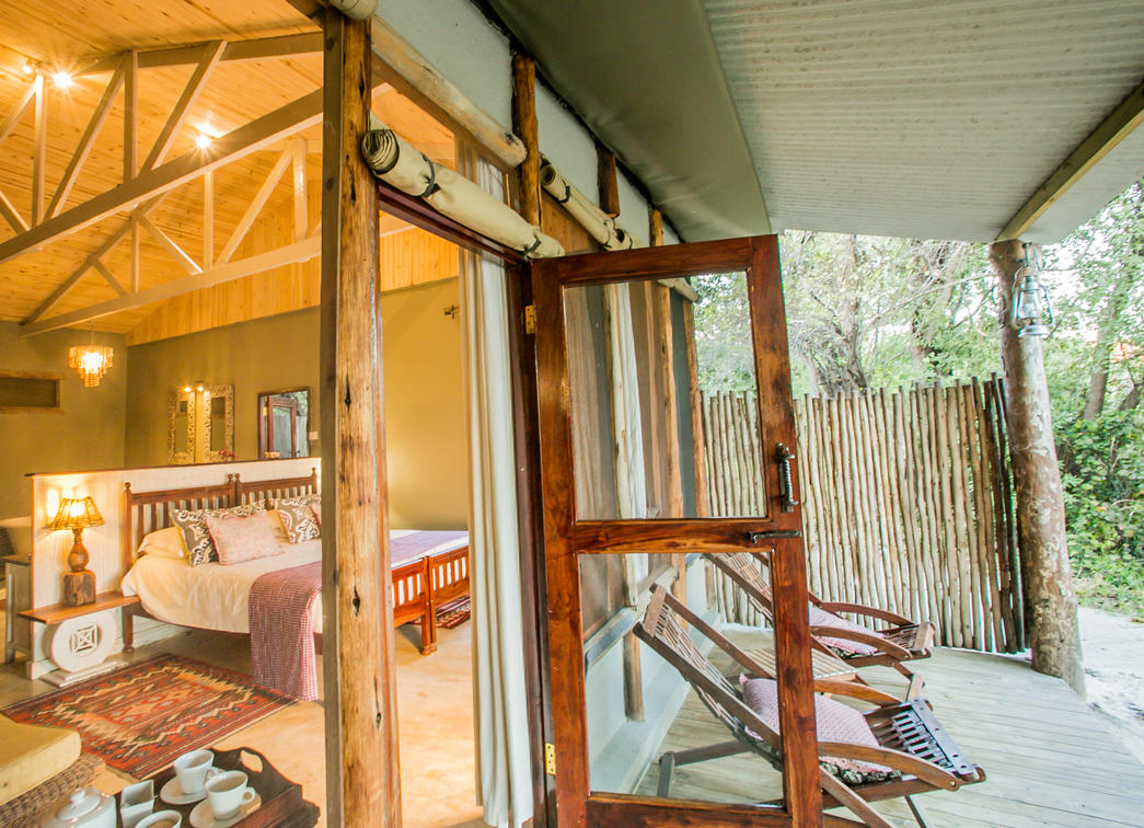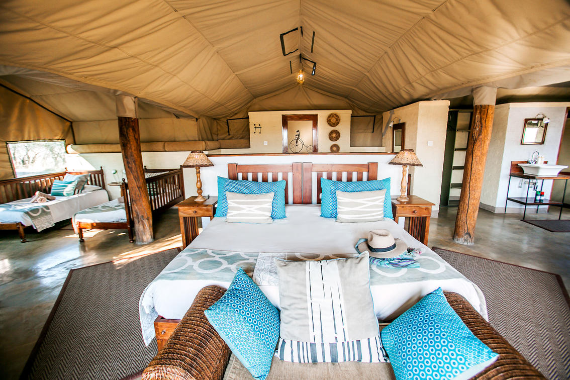 La chambre 3 est plus une tente familiale avec une salle de bain extérieure et une chambre d'enfants interleader, qui peut accueillir deux enfants. Les chambres 3 et 4 sont entièrement fermées pour la sécurité de la famille et des enfants.