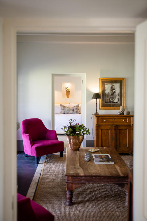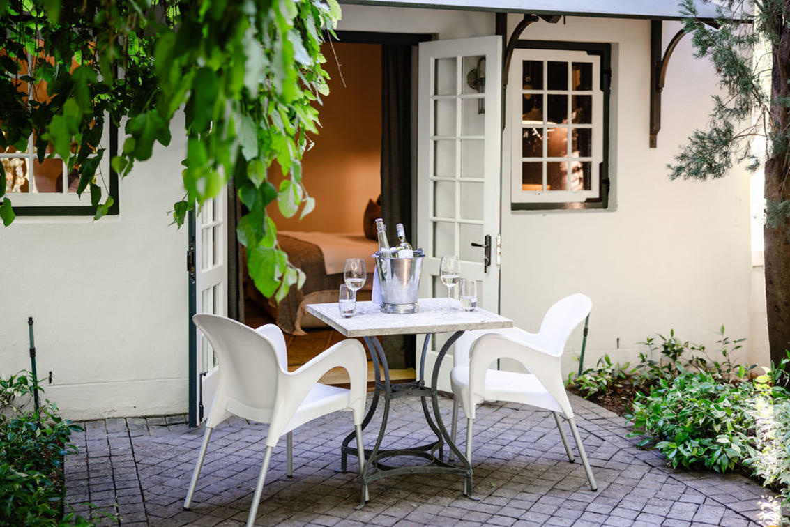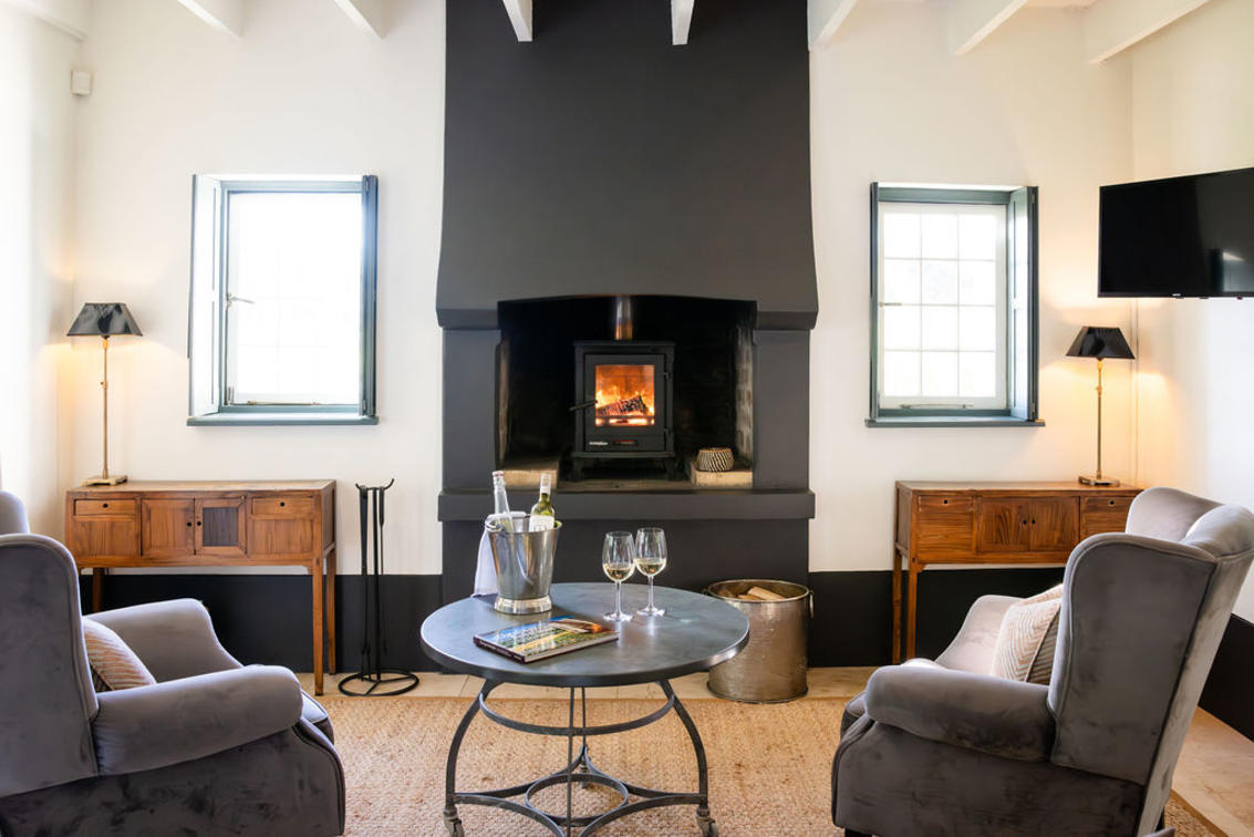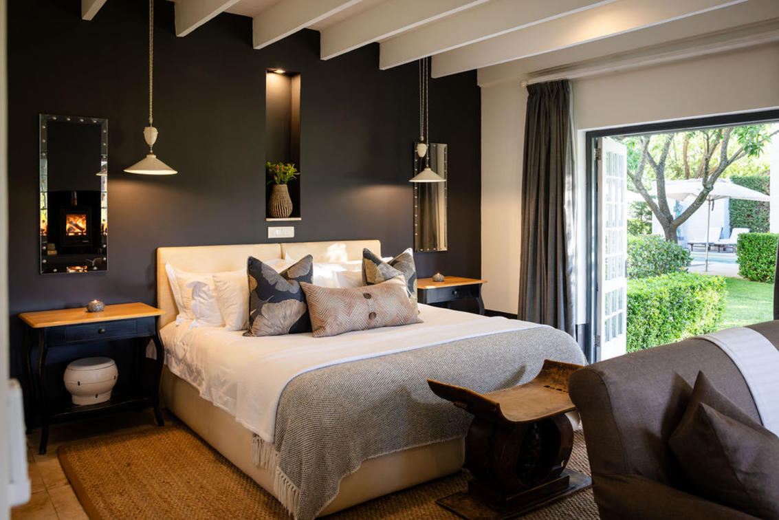Suite Lune de Miel avec cheminée, lit King size, luxueuse salle de bain attenante, salon confortable, jardin semi-privé. (Taille de la chambre : 70 mètres carrés). (Possibilité de réserver l'intégralité du cottage des propriétaires sur la base d'une utilisation exclusive ou en chambre d'hôtes - contactez ownerscottage@grandeprovence.co.za)