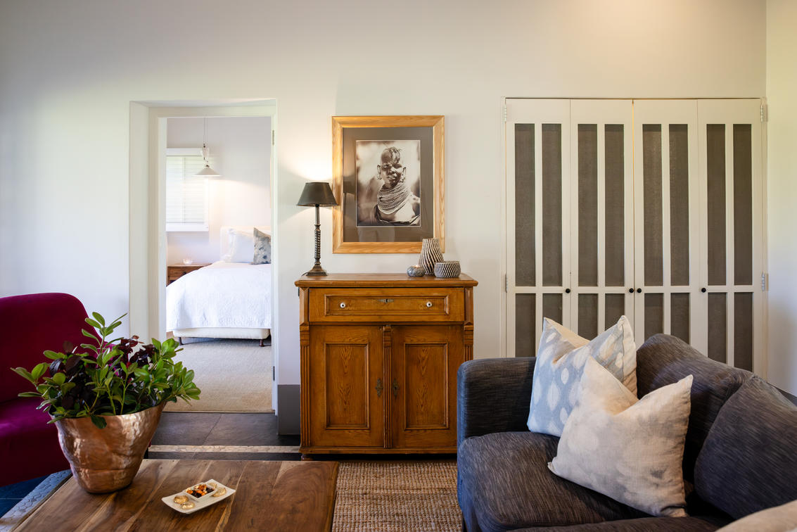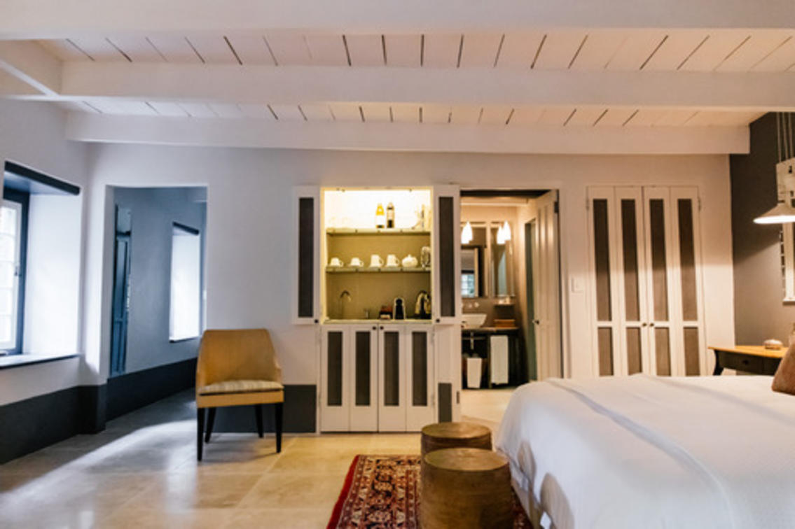 Suite Loft chic industrielle, ambiance terreuse chaleureuse, salle de bains attenante luxueuse et articles de toilette. Lit king/jumeaux, percale 400 fils, éclairage doux. (Taille de la chambre - 20 mètres carrés) (Possibilité de réserver tout le Cottage Owners à usage exclusif ou en chambre d'hôtes - contactez ownerscottage@grandeprovence.co.za)