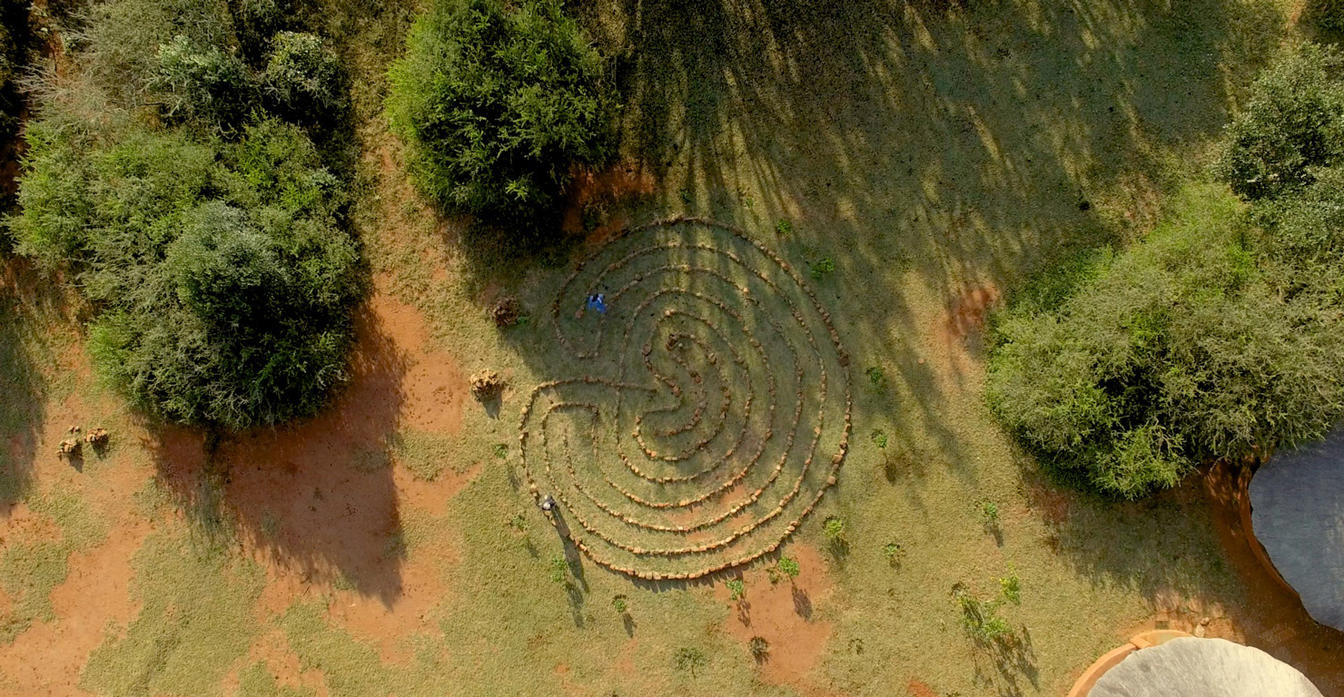 Un labyrinthe est une ancienne méditation de marche qui remonte à l'âge du bronze de l'Europe du Nord. Sa disposition est unicurale, avec un chemin qui mène au centre et repart par le même chemin. Grâce à son design intentionnel, en utilisant une géométrie ancienne, il offre un espace pour calmer et éclaircir l'esprit et les marcheurs l'utilisent dans leur recherche de guérison, de perspective et de réflexion.