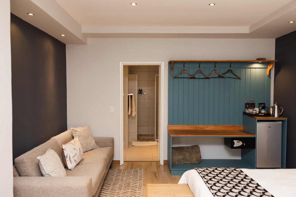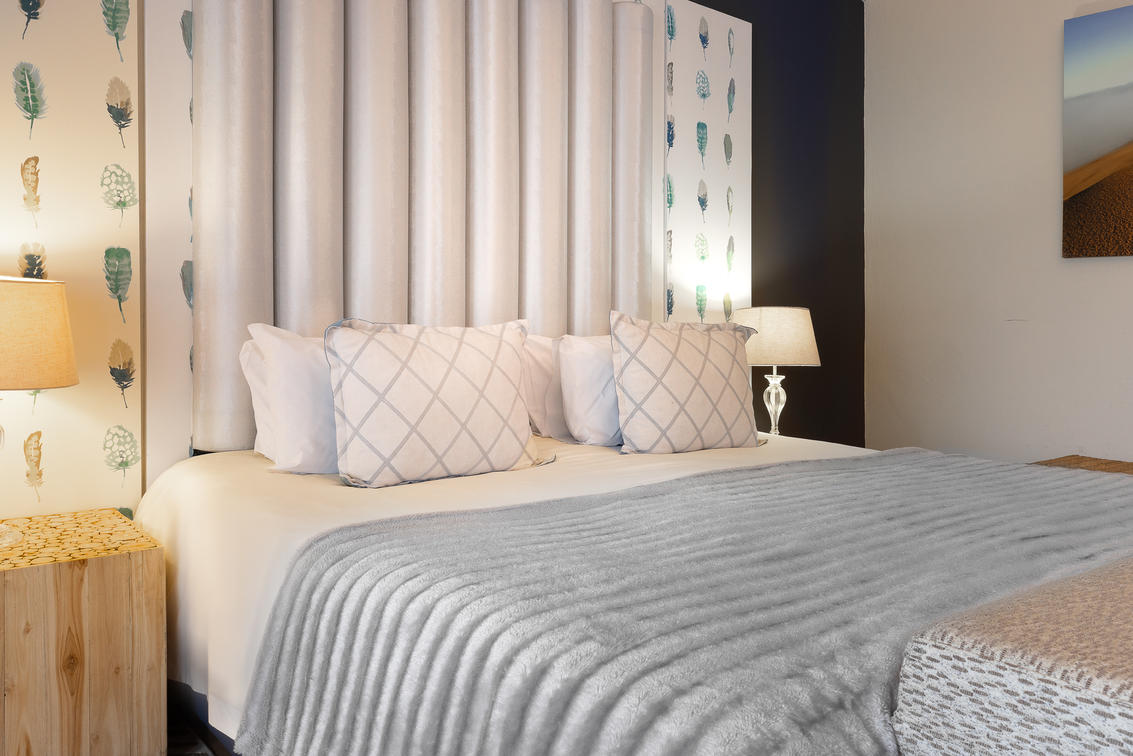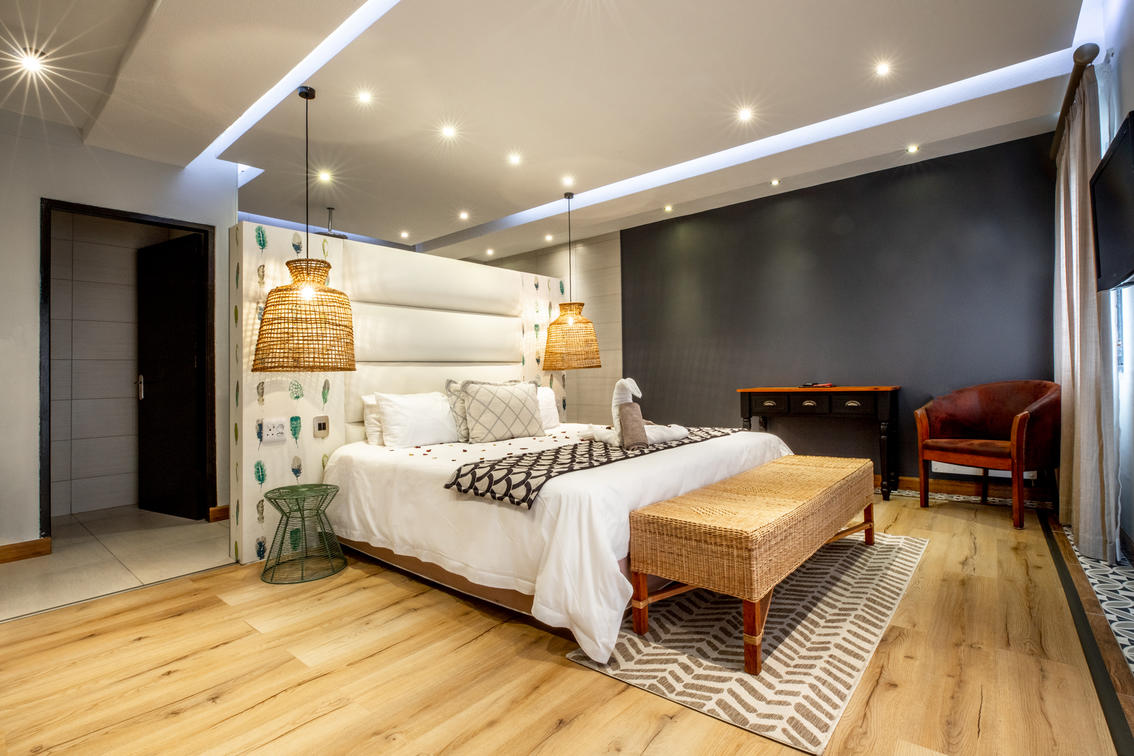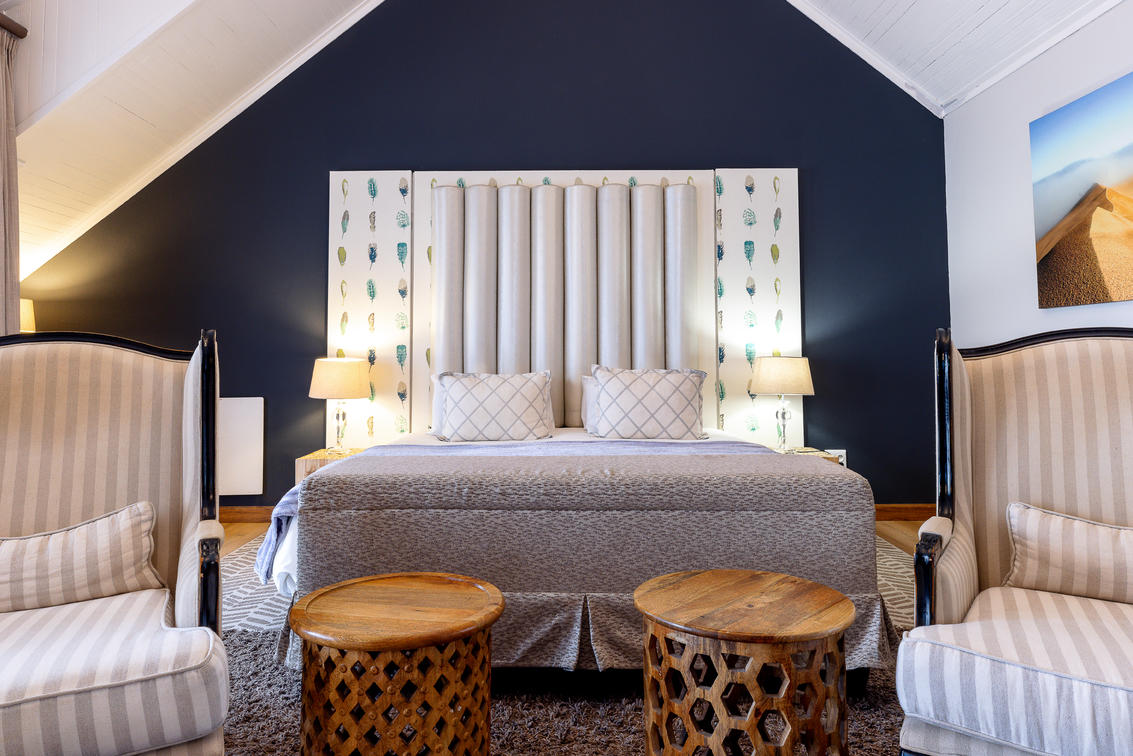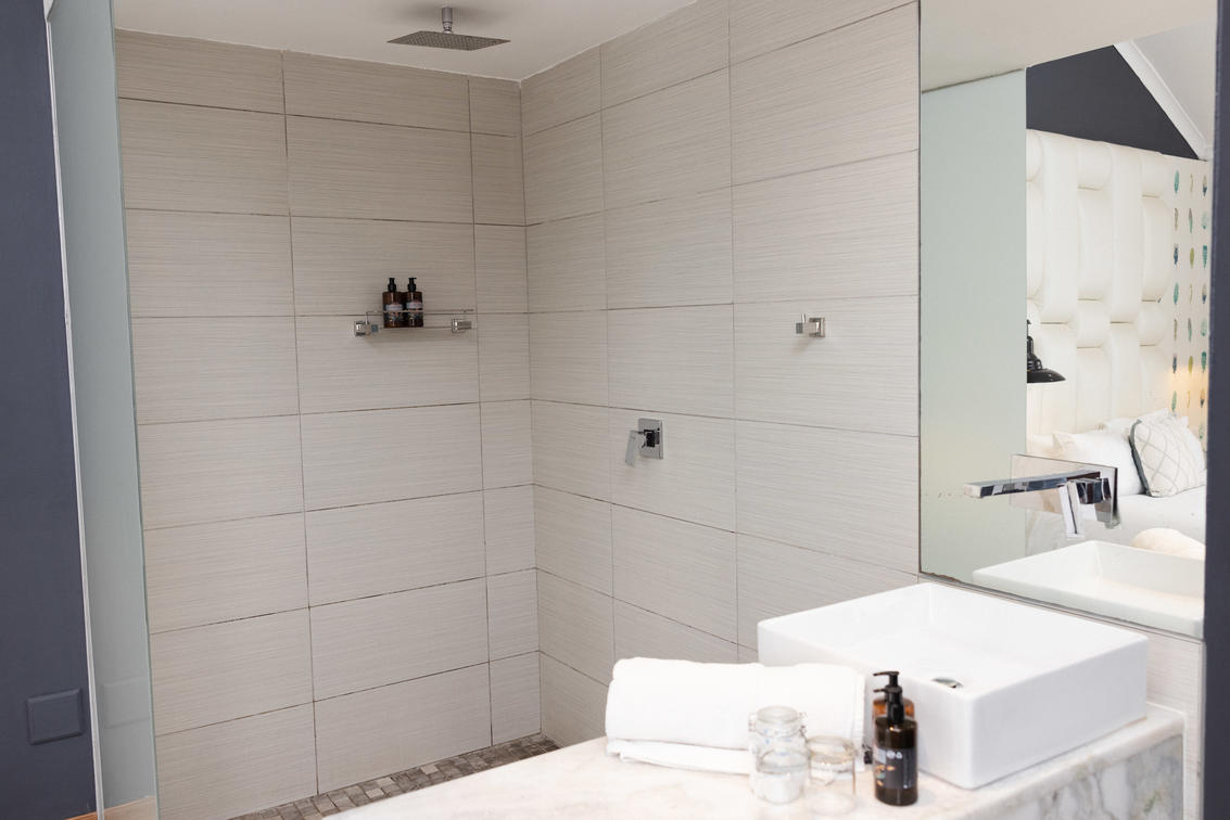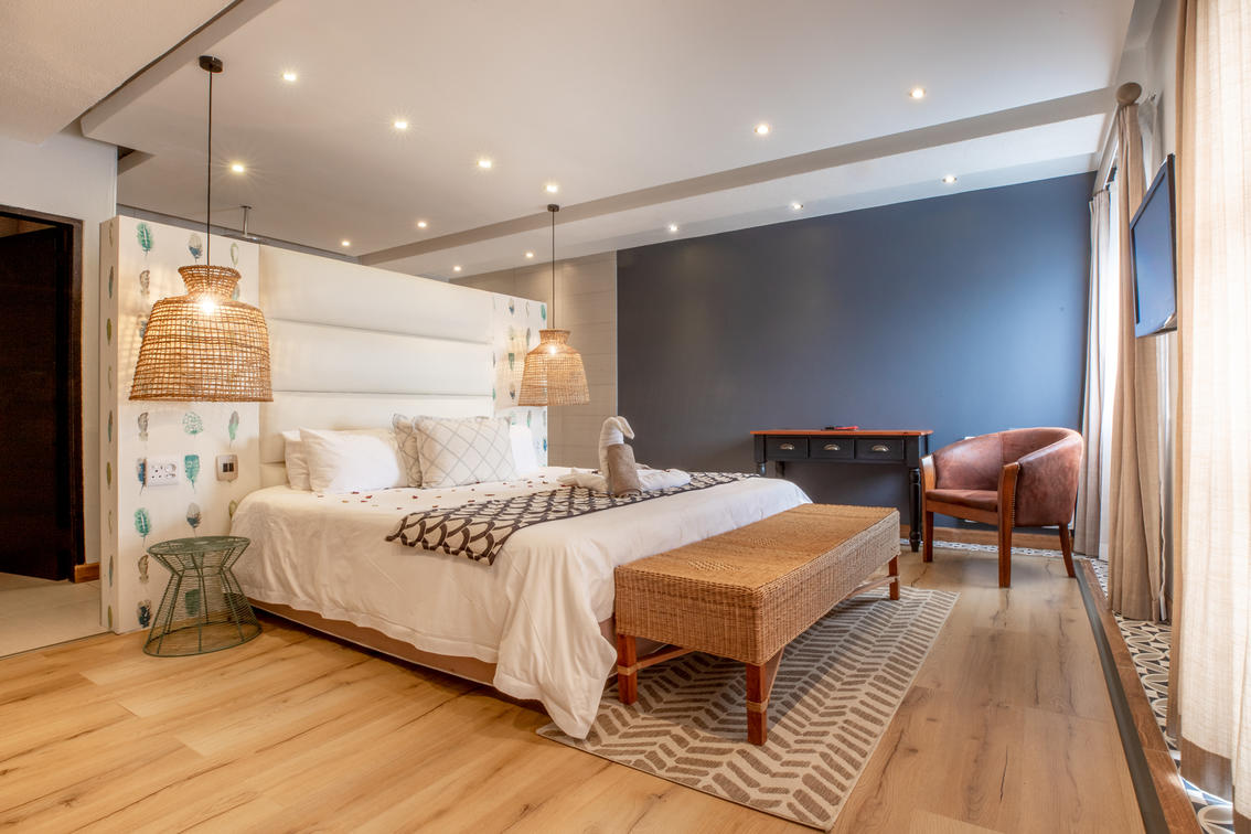 Suite avec lit king size. Douche à l'italienne, prise électrique pour toutes les prises internationales et sèche-cheveux. Télévision à écran plat avec Netflix, petit coffre-fort et réfrigérateur-bar avec eau gratuite