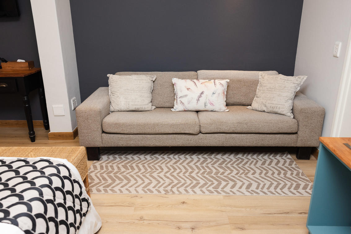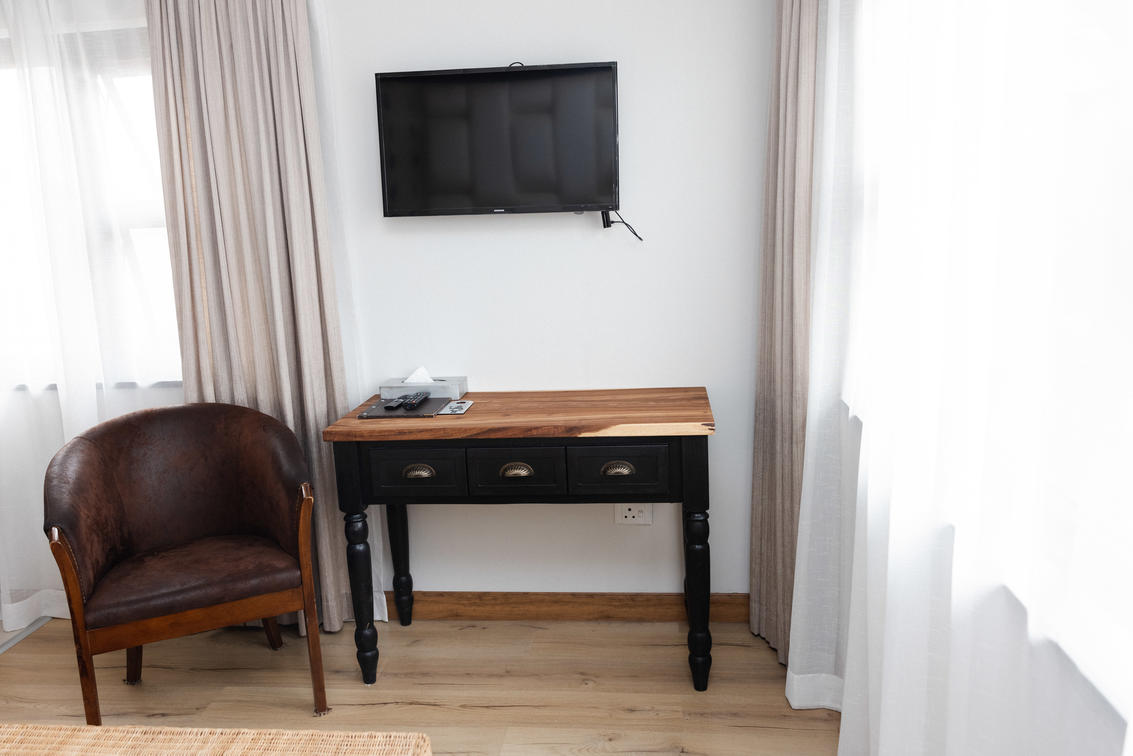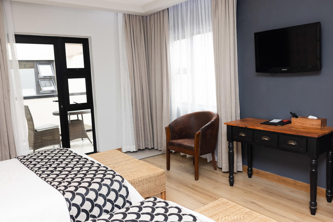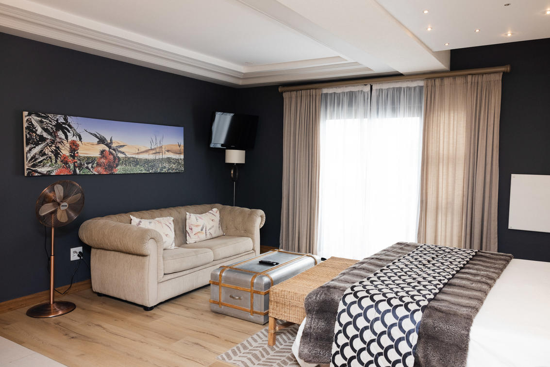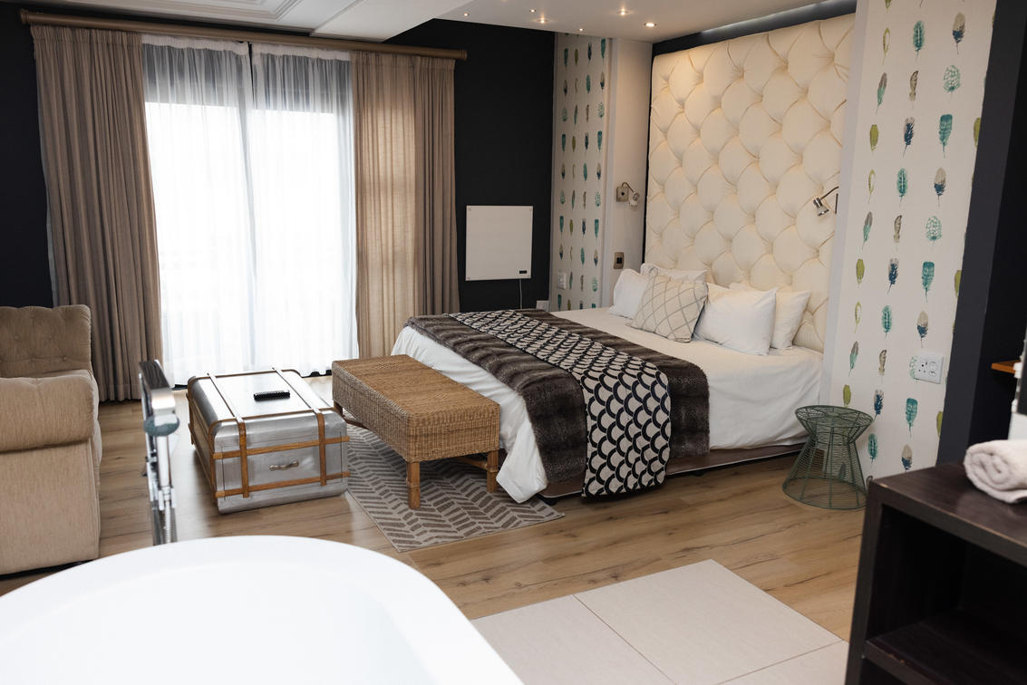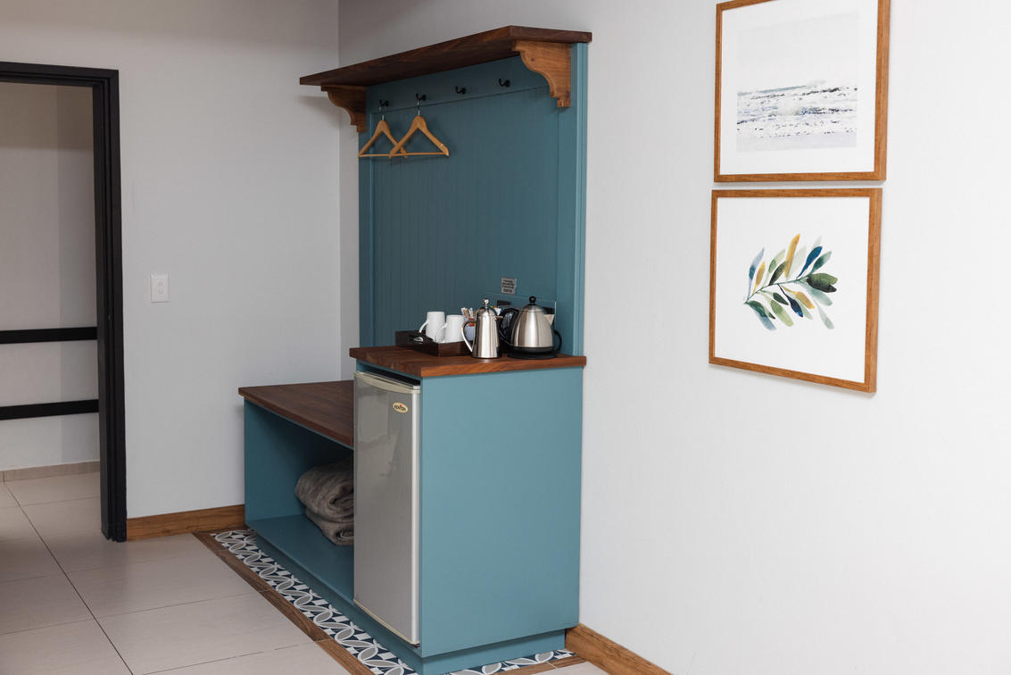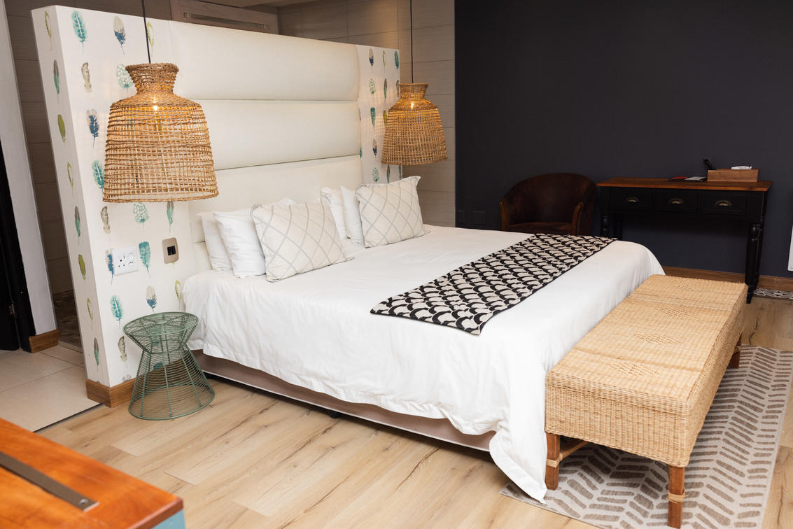 Suite avec lit king size. Douche à l'italienne, prise électrique pour toutes les prises internationales et sèche-cheveux. Télévision à écran plat avec Netflix, petit coffre-fort et réfrigérateur-bar avec eau gratuite