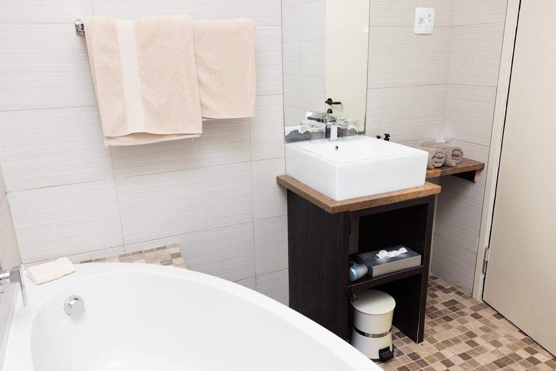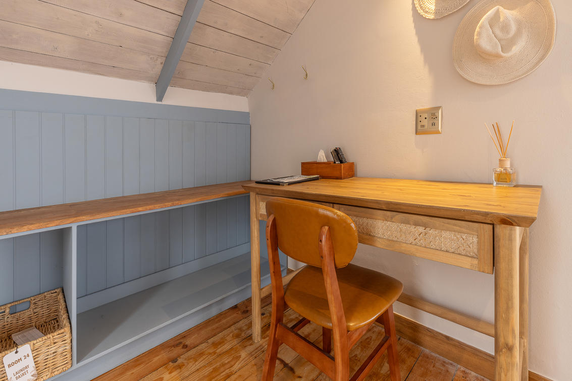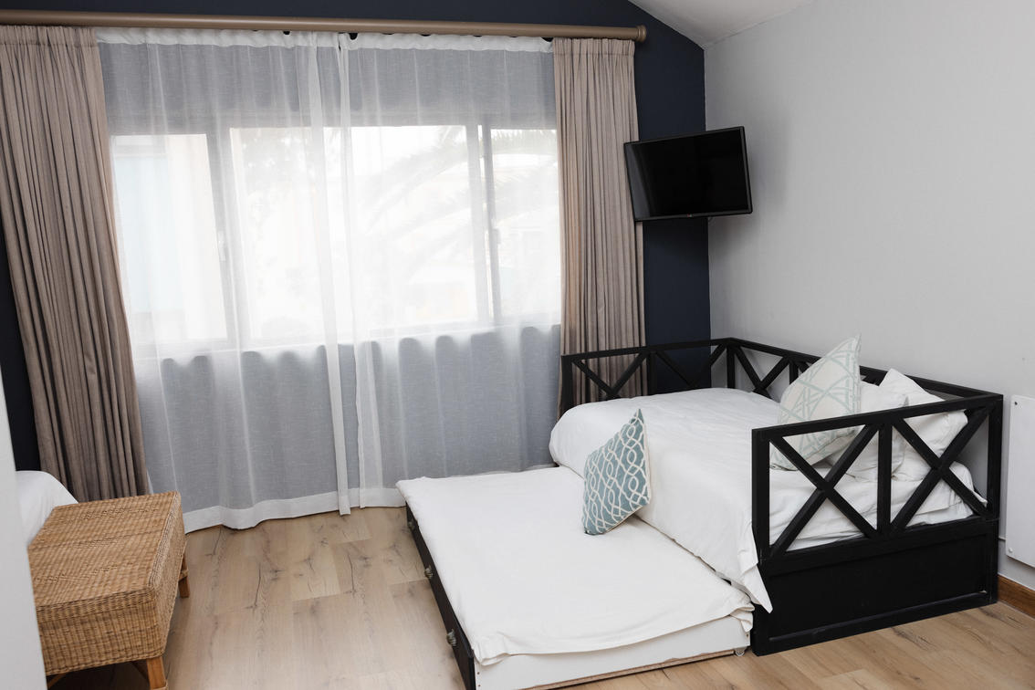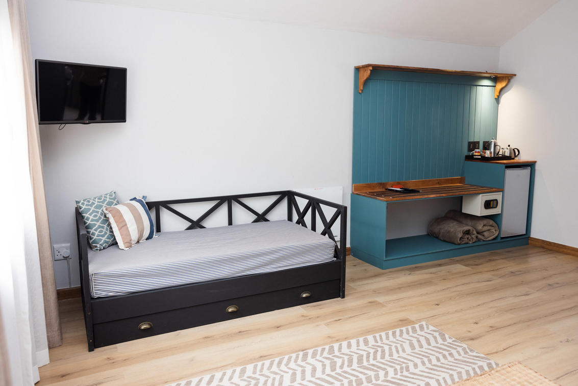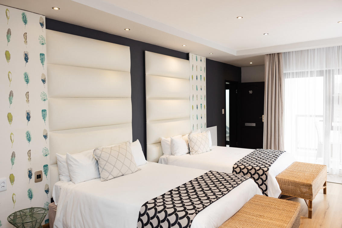 Chambre familiale standard avec 1 x queen size et 2 x lits simples et salle de bains privative.