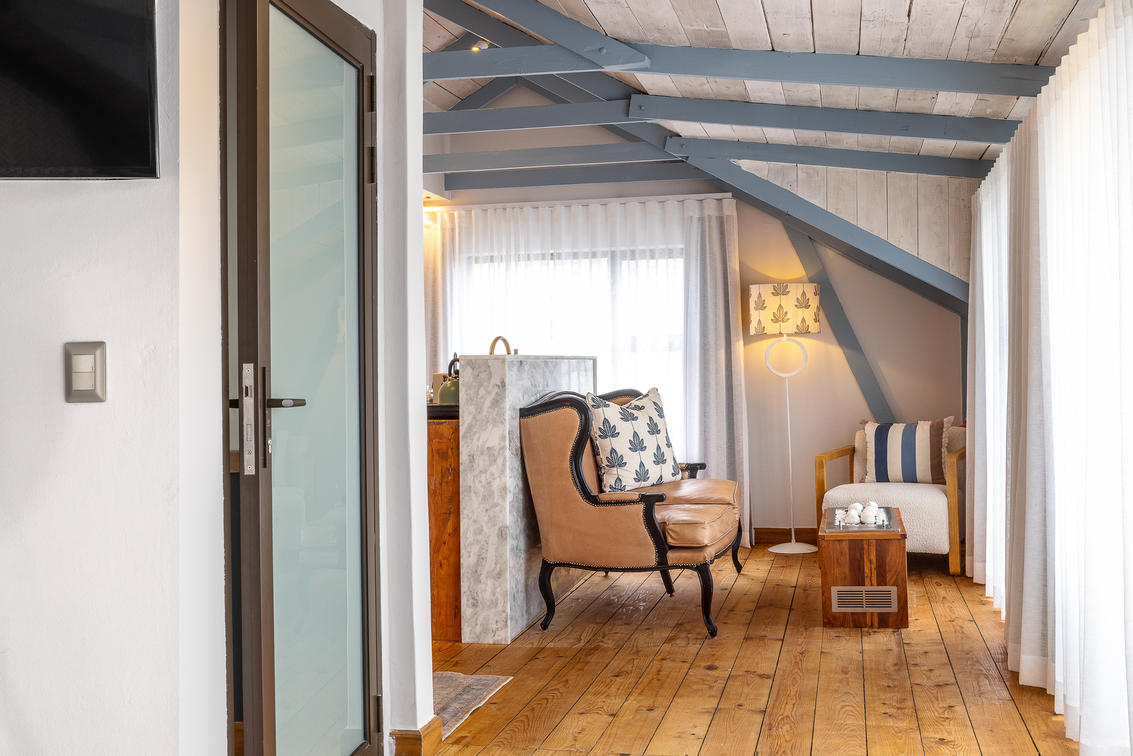 Suite avec lit king size et chauffage au sol. Douche à l'italienne et WC séparés. Porte-serviettes électrique, point d'alimentation pour toutes les prises internationales et sèche-cheveux. Kitchenette. Télévision à écran plat avec différentes chaînes, petit coffre-fort et réfrigérateur bar avec eau gratuite