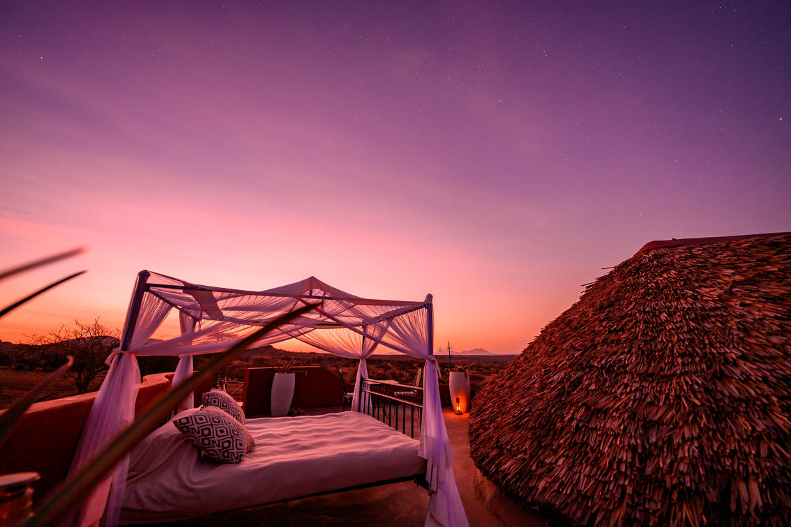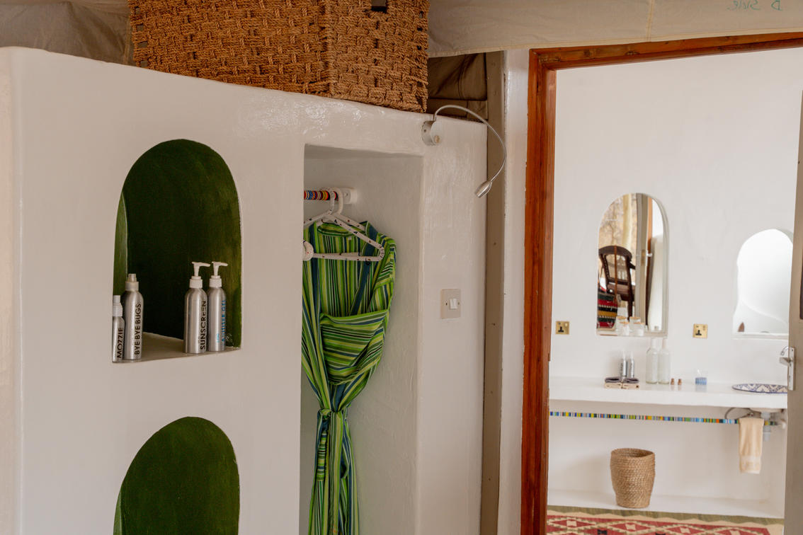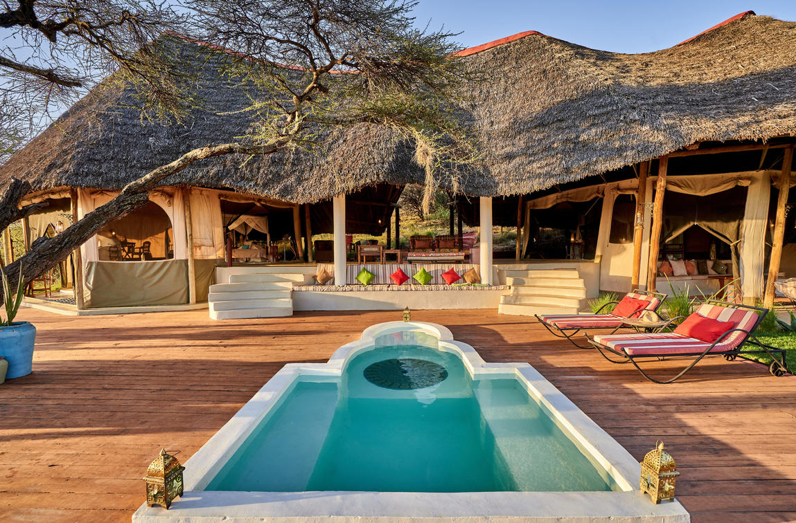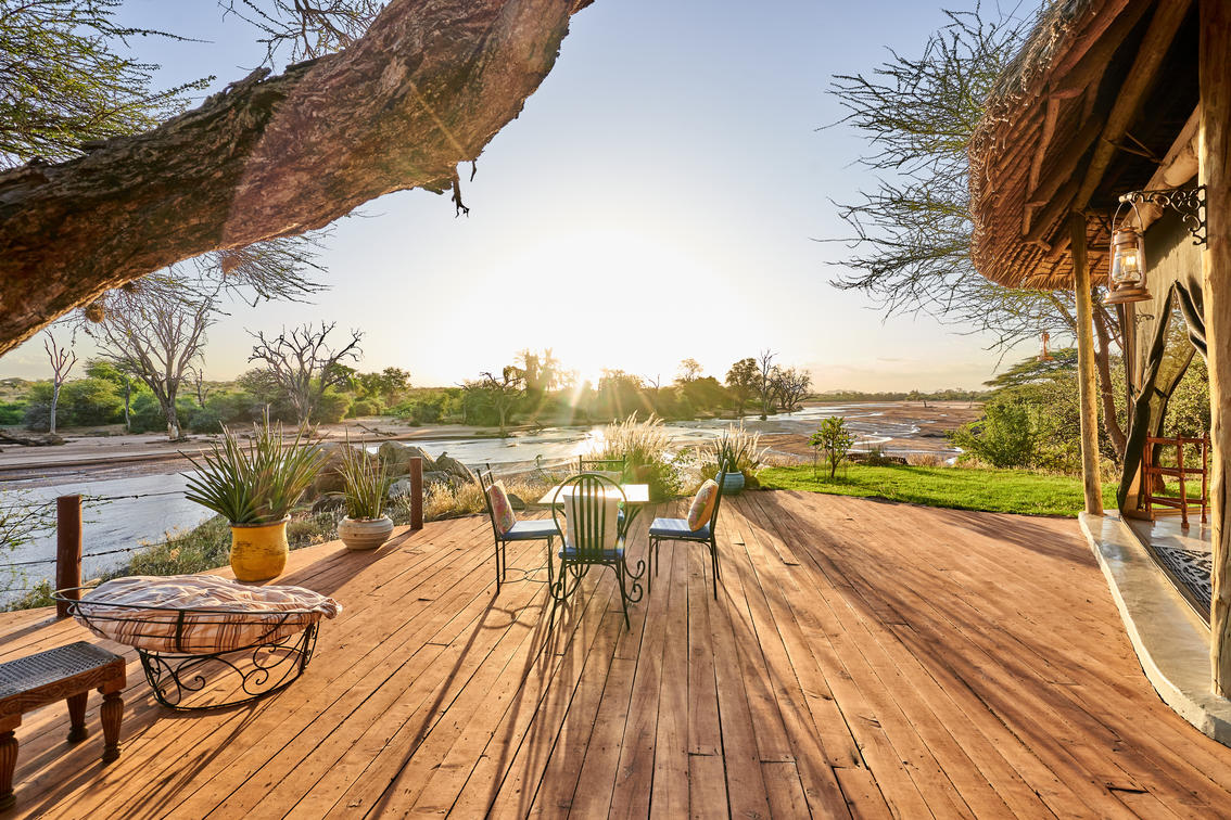 Les tentes 10 et 11 constituent une superbe suite familiale Samburu. Perché sur la falaise, non loin de la piscine d'horizon du lodge principal, il offre sérénité et isolement avec une vue imprenable sur la nature sauvage. Le logement est spacieux et comprend une chambre double et une chambre à lits jumeaux, chacune avec sa propre salle de bains, reliées par un îlot central au sein d'un bassin profond aux dimensions généreuses et d'une entrée. Il y a suffisamment d'espace pour lire, observer les oiseaux, faire du yoga et se détendre en général. Des repas privés peuvent être organisés sur demande (sous réserve de disponibilité).