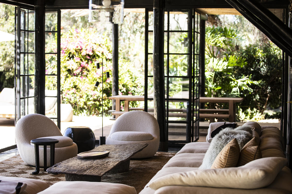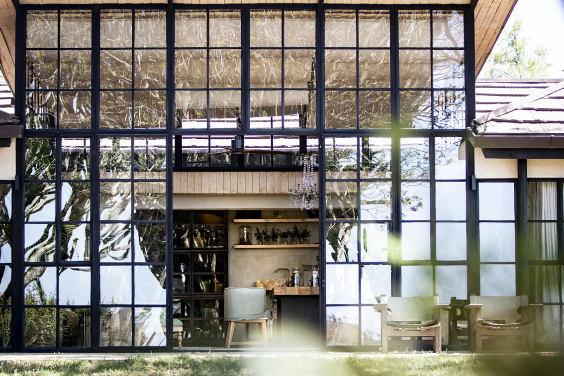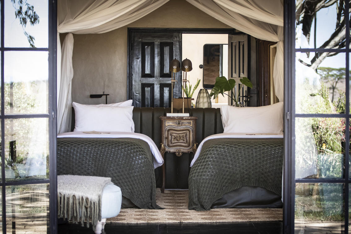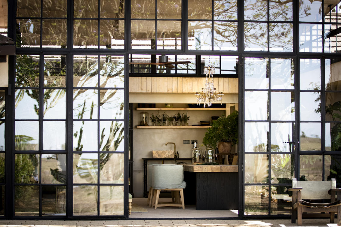 La serre réfléchit la lumière à travers de multiples fenêtres vitrées et scintille sous l'effet des reflets des jardins environnants. Les plantes tropicales en pot et les plantes succulentes renforcent la sensation de plein air à l'intérieur. Du linge de maison doux à imprimé floral, une literie superposée et des tons verts créent une maison de deux chambres d'inspiration botanique avec une table à manger et un salon communs à double volume. Les deux chambres disposent d'une élégante salle de bains privative et offrent une vue imprenable sur les contreforts sauvages du mont Kenya. Le matin, toute la maison est inondée d'une lumière cuivrée alors que le soleil se lève sur ce paysage sauvage et indompté. Cette villa est idéale pour une famille ou deux couples voyageant ensemble.