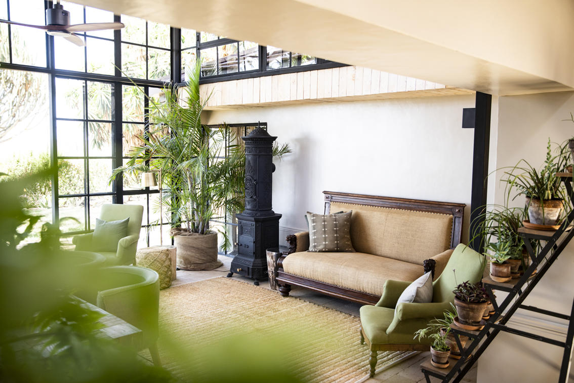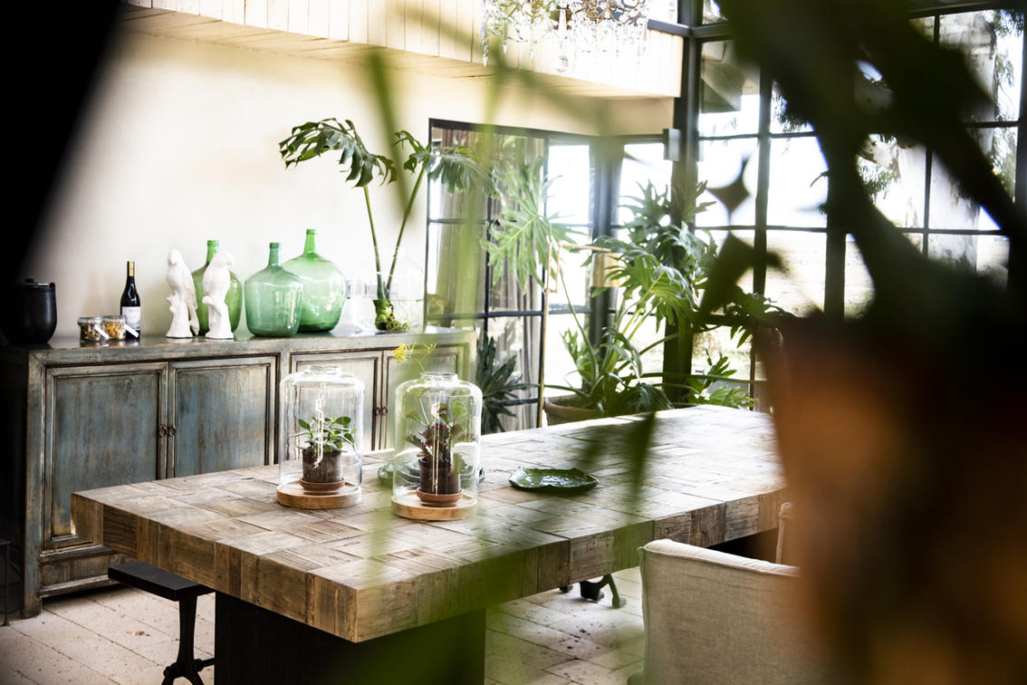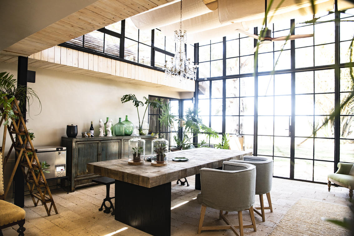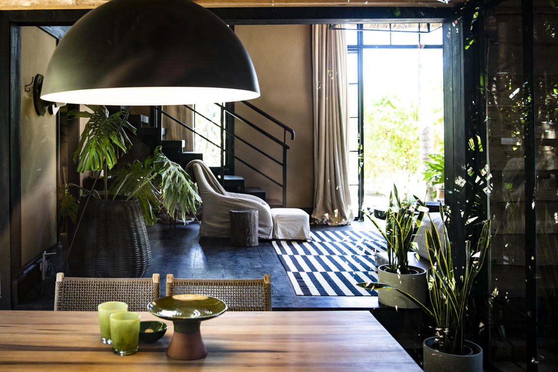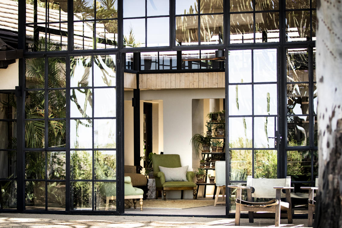 La serre réfléchit la lumière à travers de multiples fenêtres vitrées et scintille sous l'effet des reflets des jardins environnants. Les plantes tropicales en pot et les plantes succulentes renforcent la sensation de plein air à l'intérieur. Du linge de maison doux à imprimé floral, une literie superposée et des tons verts créent une maison de deux chambres d'inspiration botanique avec une table à manger et un salon communs à double volume. Les deux chambres disposent d'une élégante salle de bains privative et offrent une vue imprenable sur les contreforts sauvages du mont Kenya. Le matin, toute la maison est inondée d'une lumière cuivrée alors que le soleil se lève sur ce paysage sauvage et indompté. Cette villa est idéale pour une famille ou deux couples voyageant ensemble.