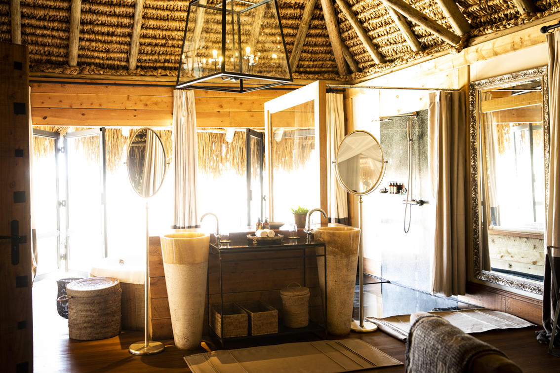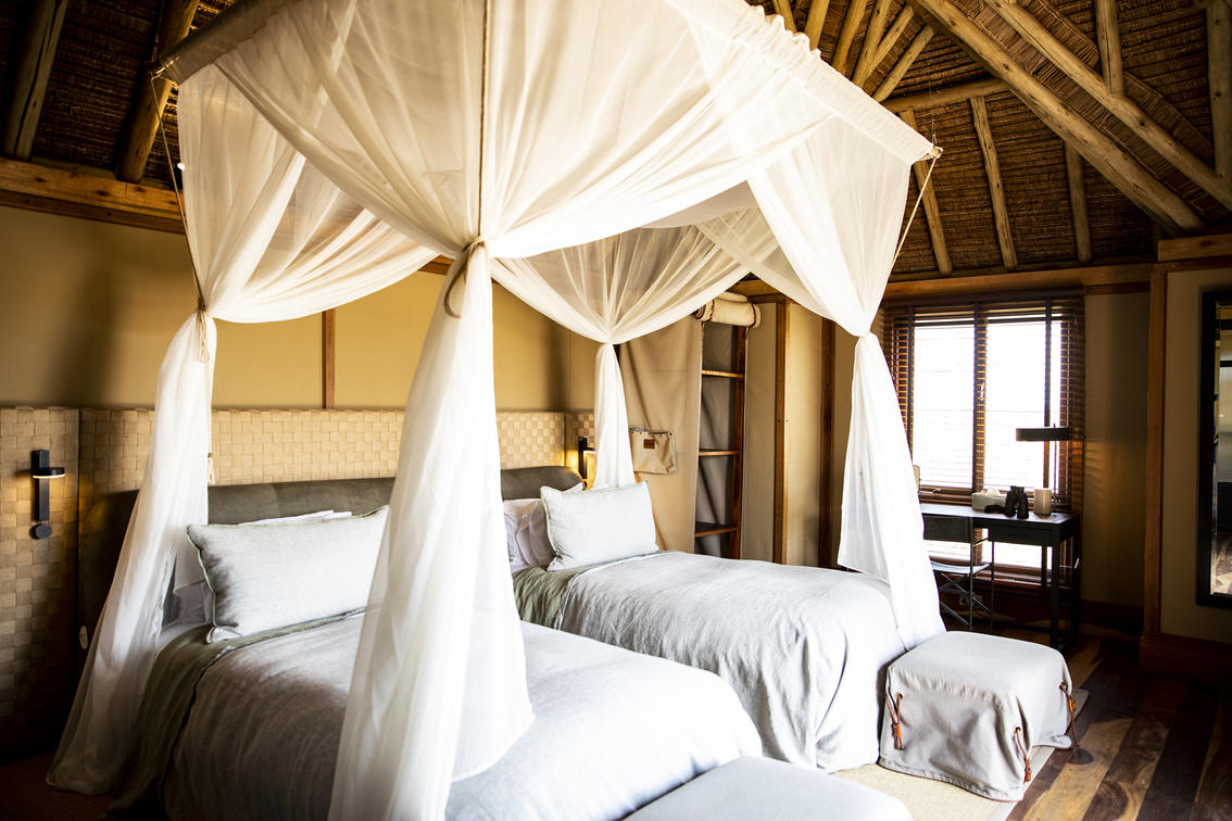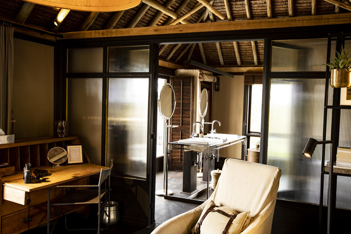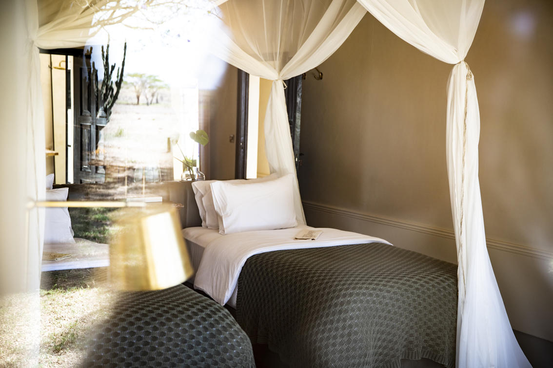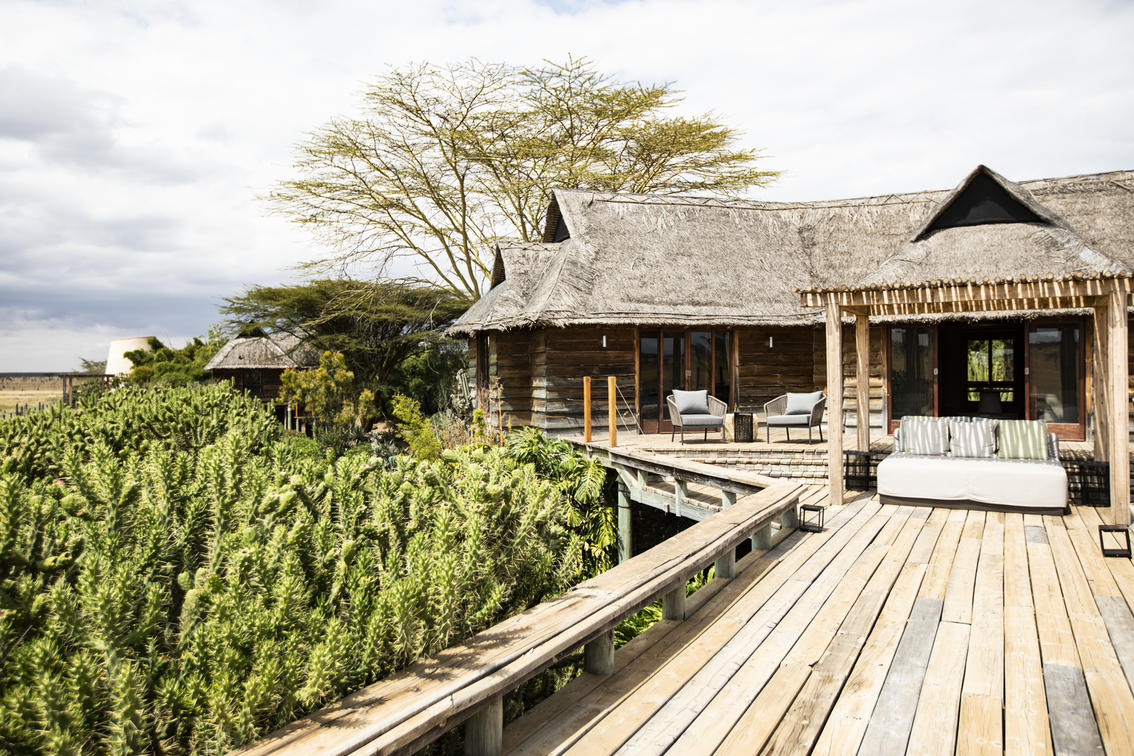 Cette villa de deux chambres et deux bâtiments est parfaite pour les jeunes mariés ou les familles recherchant une intimité absolue. Les deux chambres sont spacieuses et disposent de belles salles de bains privatives. Ils sont construits sur pilotis reliés par des passerelles suspendues et surplombent tous deux le salon et la salle à manger en plein air le long d'une magnifique piscine privée. Une chambre de forme octogonale et une chambre carrée offrent de multiples angles de vue sur le fleuve, les plaines et le mont Kenya au-delà. Le point d'eau et la nappe de sel devant la villa en font un endroit merveilleux pour s'asseoir et observer la faune depuis votre véranda.